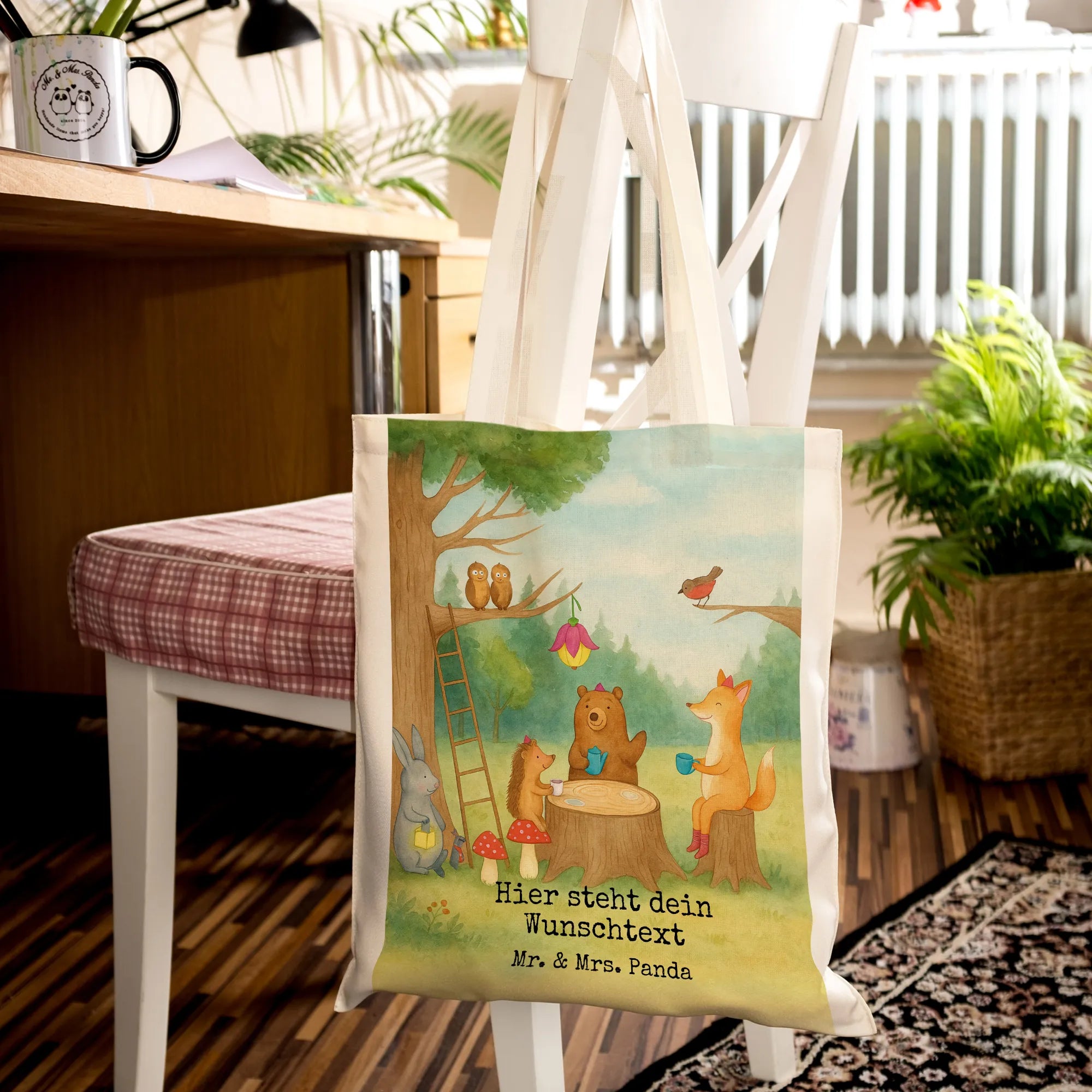 Einkaufstasche Personalisiert Waldtiere Picknick Design