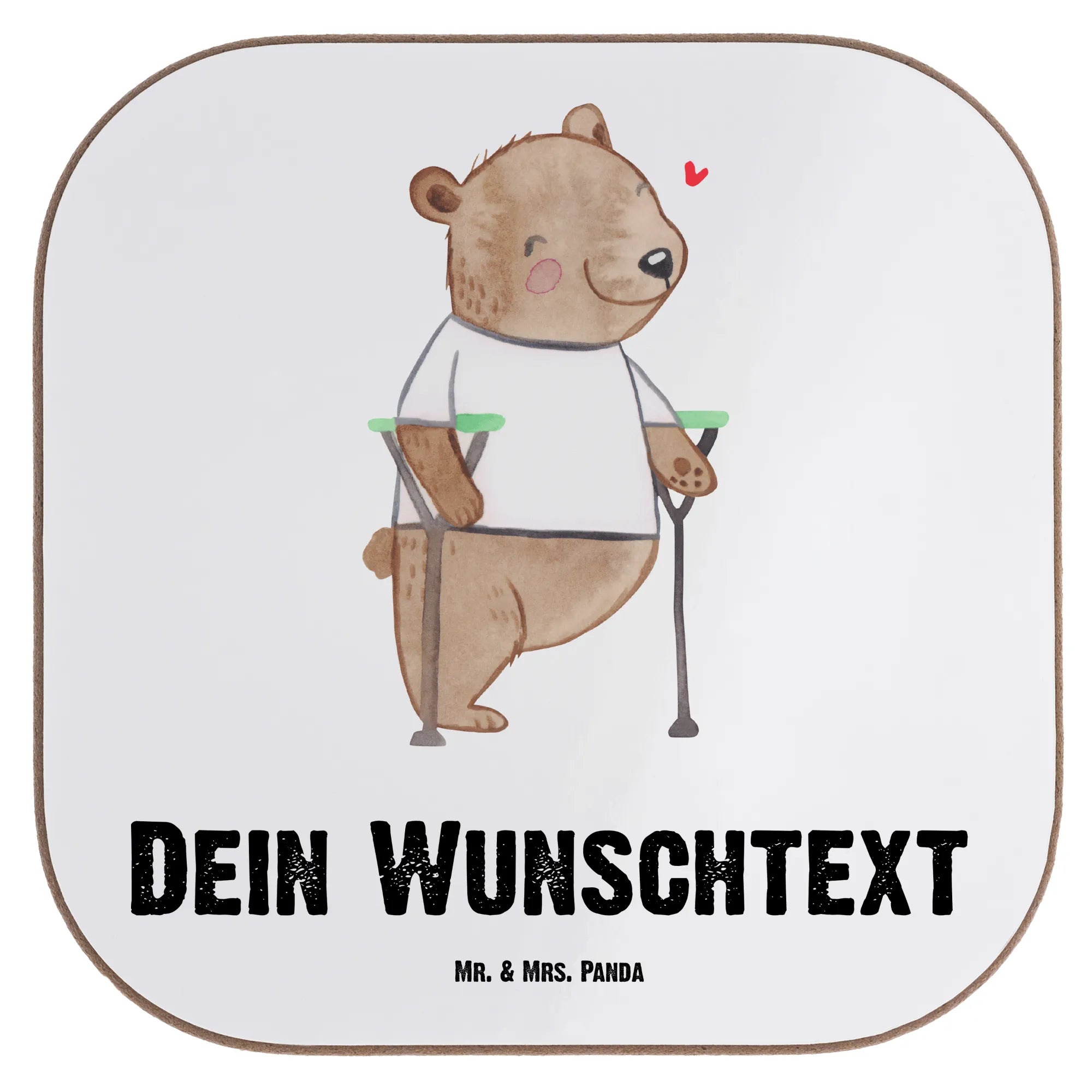 Die personalisierten Untersetzer von Mr. & Mrs. Panda sind nicht nur praktische Begleiter für dein Zuhause, sondern auch ein Zeichen der Wertschätzung und Anerkennung für besondere Menschen. Der Untersetzer mit dem süßen Motiv "Bär Beinamputation" aus der Kollektion "Tiere mit Superkräften" ist besonders für diejenigen geeignet, die ihren Alltag mit einem Handicap meistern. Er trägt die Botschaft: "Wenn das Leben an dir vorbeirast, gehe dein eigenes Tempo."