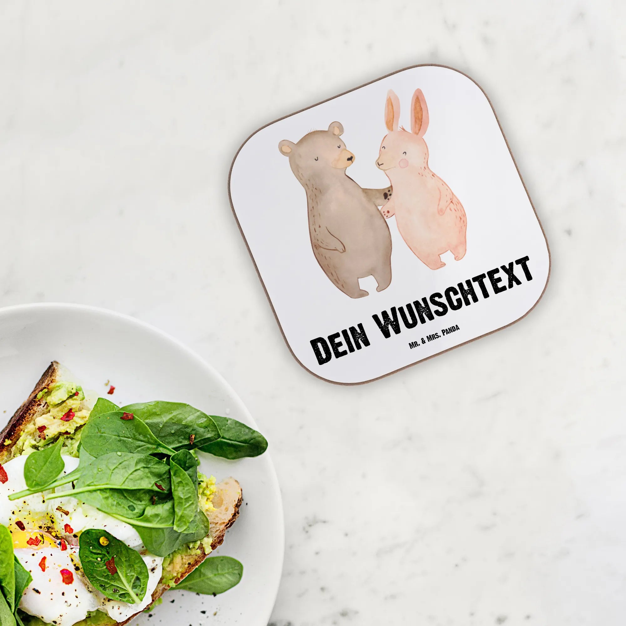 Suchst du das perfekte Geschenk für deinen besten Freund oder deine beste Freundin? Dann sind unsere personalisierten Untersetzer mit dem Motiv "Bär Hase Umarmen" genau das richtige für dich! Diese schönen Untersetzer aus der Kollektion Liebe von Mr. & Mrs. Panda sind mehr als nur praktische Tischunterlagen – sie sind ein Ausdruck von Freundschaft und Zuneigung.