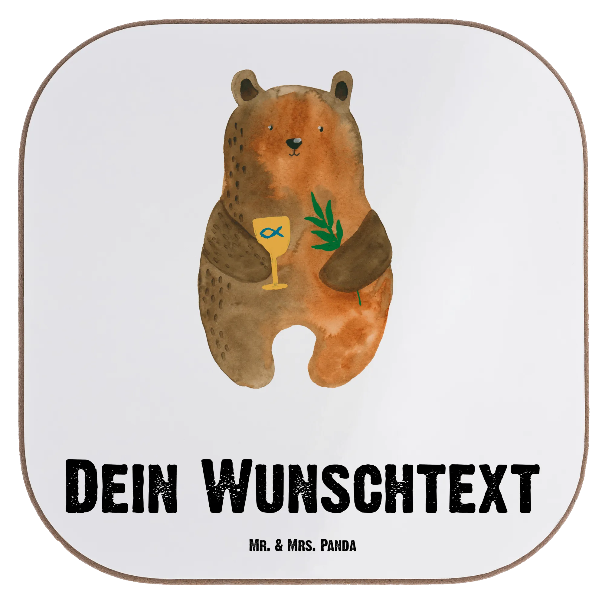 Entdecke den einzigartigen personalisierten Untersetzer 'Konfirmation-Bär' von Mr. & Mrs. Panda – das perfekte Geschenk zur Konfirmation! Dieser wunderschöne quadratische Untersetzer ist nicht nur ein nützliches Accessoire, das deinen Tisch vor Abdrücken, Kratzern und extremen Temperaturen schützt, sondern auch ein besonderes Erinnerungsstück für diesen bedeutenden Tag. Mit dem süßen Motiv eines Bären, der einen goldenen Kelch in einer Hand und einen Zweig in der anderen hält, strahlt der Untersetzer Freude und anlassgemäße Feierlichkeit aus. Setze ein Lächeln auf das Gesicht des Beschenkten mit dem Slogan 'Alles Gute zur Konfirmation', der liebevoll in das Design integriert ist.