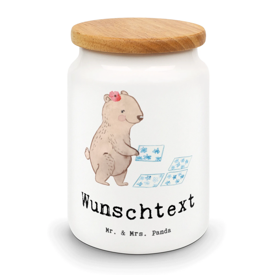 Die personalisierte Vorratsdose von Mr. & Mrs. Panda ist nicht nur schön, sondern auch praktisch. Mit einer Höhe von 145 mm und einem Durchmesser von 95 mm bietet sie ausreichend Platz für deine Zutaten oder Snacks. Die Füllmenge von 650 ml macht sie ideal für ein großzügiges Aufbewahren. Diese Dose ist aus hochwertiger Keramik gefertigt und kommt mit einem massiven Holzdeckel, der mit einer Kunststoffdichtung versehen ist, um die Frische deiner Lebensmittel zu garantieren. Du kannst die Vorratsdose nach deinen Wünschen personalisieren, sodass sie einen besonderen Platz in deiner Küche einnehmen kann. Egal ob für Zucker, Mehl oder kleine Snacks, die liebevollen Motive und Sprüche von Mr. & Mrs. Panda verleihen deiner Küche einen ganz besonderen Charme. Zudem ist die Dose pflegeleicht, denn sie ist spülmaschinengeeignet.