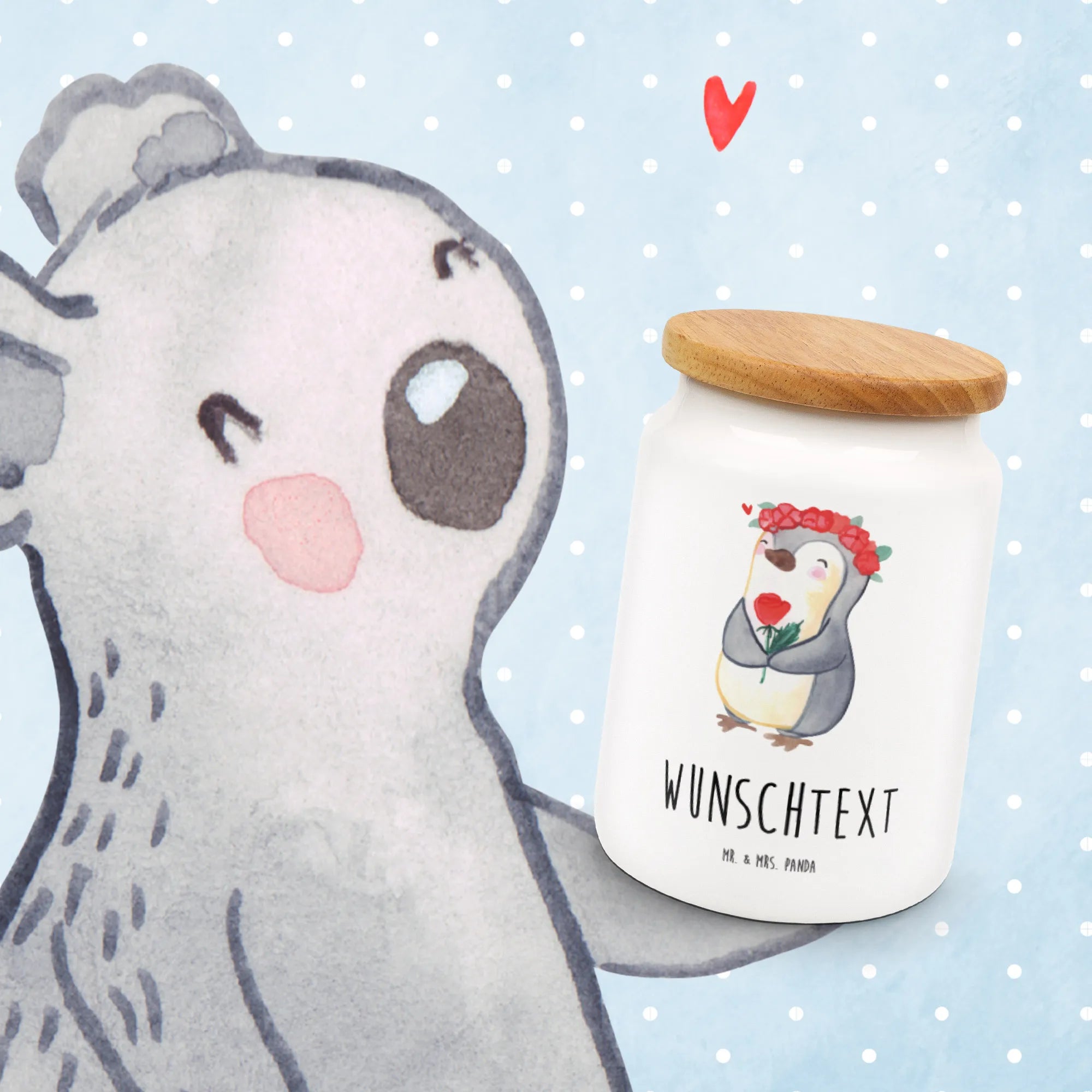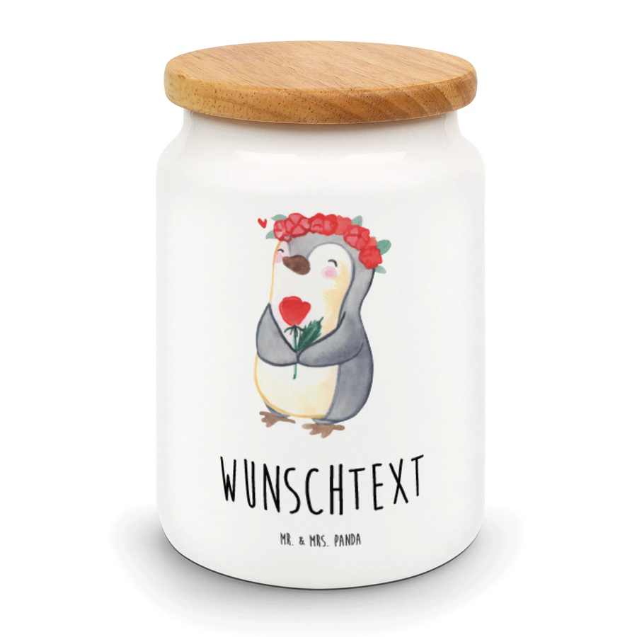 Die personalisierte Vorratsdose von Mr. & Mrs. Panda ist das perfekte Accessoire für deine Küche! Mit ihren liebevollen Motiven und Sprüchen bringt sie Freude und Persönlichkeit in deinen Alltag. Diese hochwertige Keramikdose hat eine Höhe von 145 mm und einen Durchmesser von 95 mm, perfekt geeignet für deine Schätze wie Gewürze, Snacks oder Süßigkeiten. Mit einer Füllmenge von 650 ml bietet sie reichlich Platz. Der stilvolle Holzdeckel mit Kunststoffdichtung sorgt dafür, dass alles frisch bleibt. Du kannst die Dose mit deinem eigenen Wunschtext personalisieren, was sie zu einem einzigartigen Geschenk macht. Ob für dich selbst oder als liebevolles Geschenk für Freunde – diese Dose wird garantiert ein Lächeln hervorrufen! Außerdem ist sie spülmaschinengeeignet und sehr pflegeleicht.