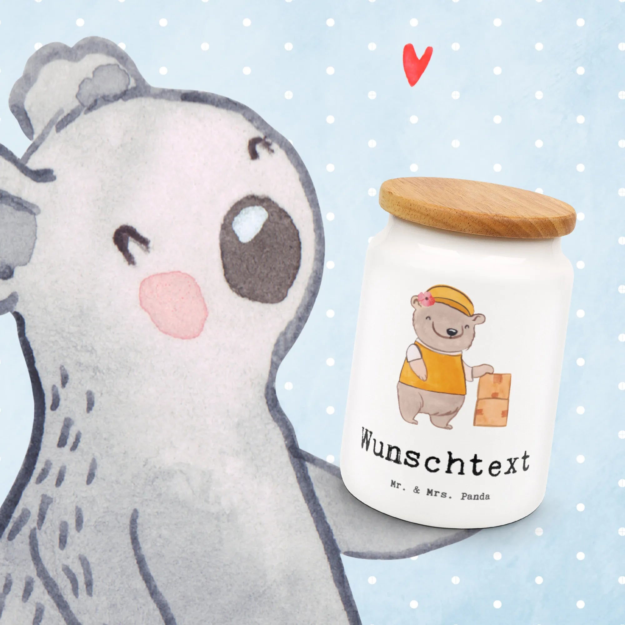 Entdecke die kreative Berufe Kollektion von Mr. & Mrs. Panda und finde weitere tolle Geschenkmöglichkeiten! Lass Deiner Kreativität freien Lauf und mach jedem Lieferdienstmitarbeiter eine Freude mit dieser liebevollen Vorratsdose! Egal, ob zum Geburtstag, zur Beförderung oder einfach als kleine Überraschung – mit dieser persönlichen Vorratsdose zauberst Du jedem ein Lächeln ins Gesicht und zeigst, wie viel Du ihre Arbeit schätzt!