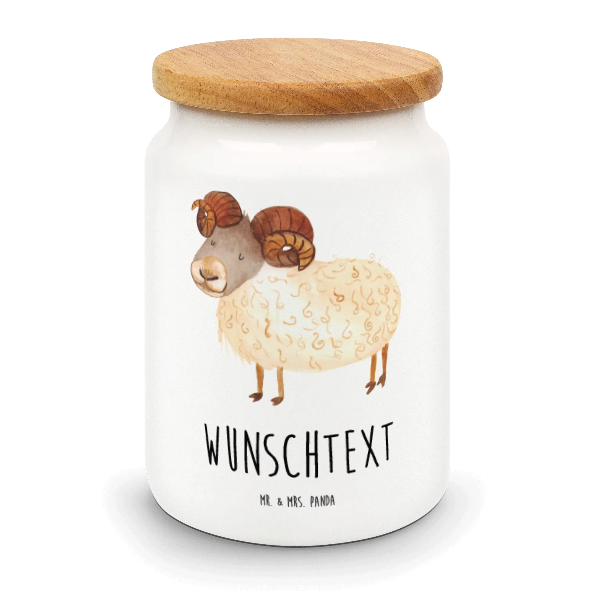 Die personalisierte Vorratsdose mit dem Motiv "Sternzeichen Widder" von Mr. & Mrs. Panda ist das perfekte Geschenk für alle, die im Zeichen des Widders geboren sind! Ob zu Geburtstagen im März oder April, zu Feiertagen oder einfach als liebevolles Mitbringsel – diese bezaubernde Keramikdose bringt Freude in jedes Zuhause.