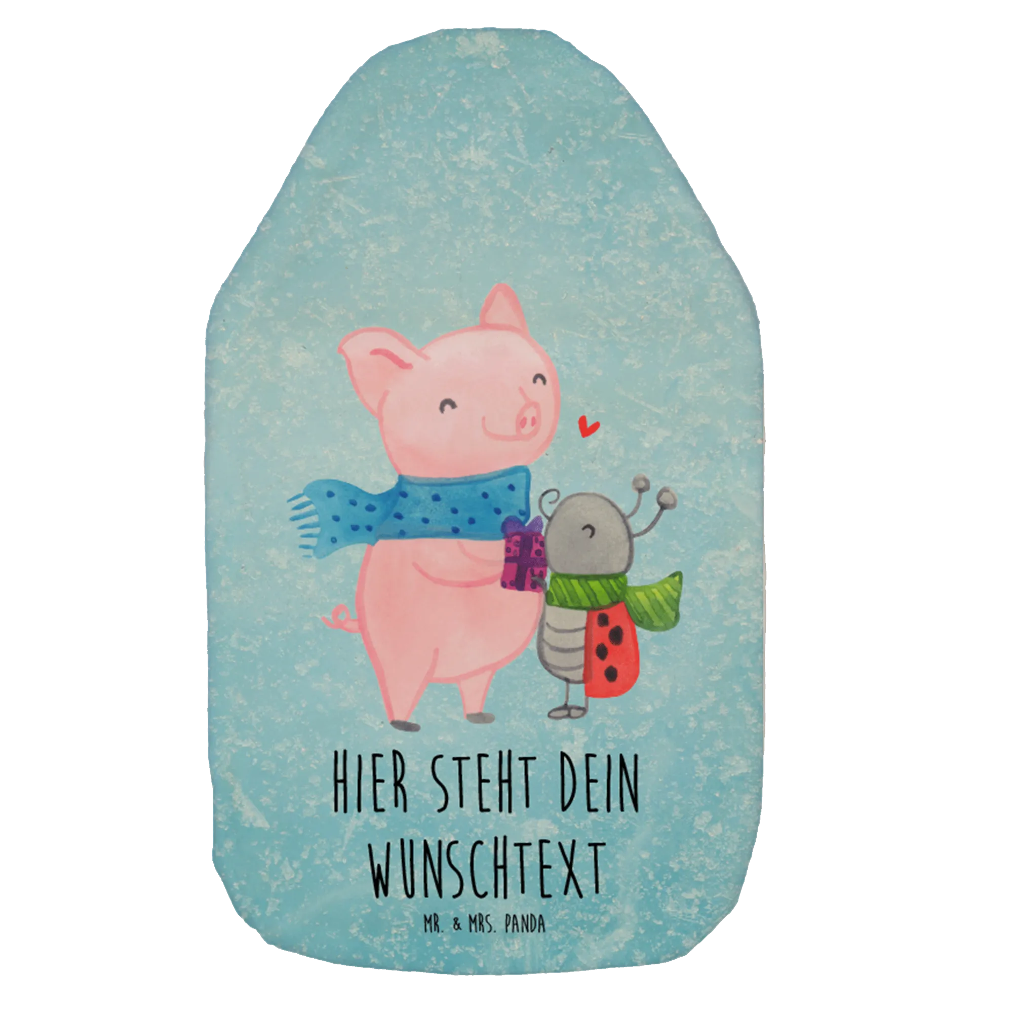 Mach dich bereit für die kuschelige Winterzeit mit unserer personalisierten Wärmflasche Glühschwein Smörle aus der Winter Kollektion von Mr. & Mrs. Panda! Diese wunderschön gestaltete Wärmflasche ist nicht nur stylisch, sondern auch super praktisch für die kälteren Tage. Mit einem herzlichen, handgezeichneten Motiv unseres Glühschweins Smörle, das seinen blauen gepunkteten Schal stolz präsentiert, zaubert sie garantiert ein Lächeln auf dein Gesicht und bringt Wärme in dein Herz. Das rosa Schweinchen und der süße Marienkäfer teilen eine besondere Freundschaft, die durch ein kleines rotes Herz symbolisiert wird, und versprühen damit einen Hauch von magischer Winterromantik.