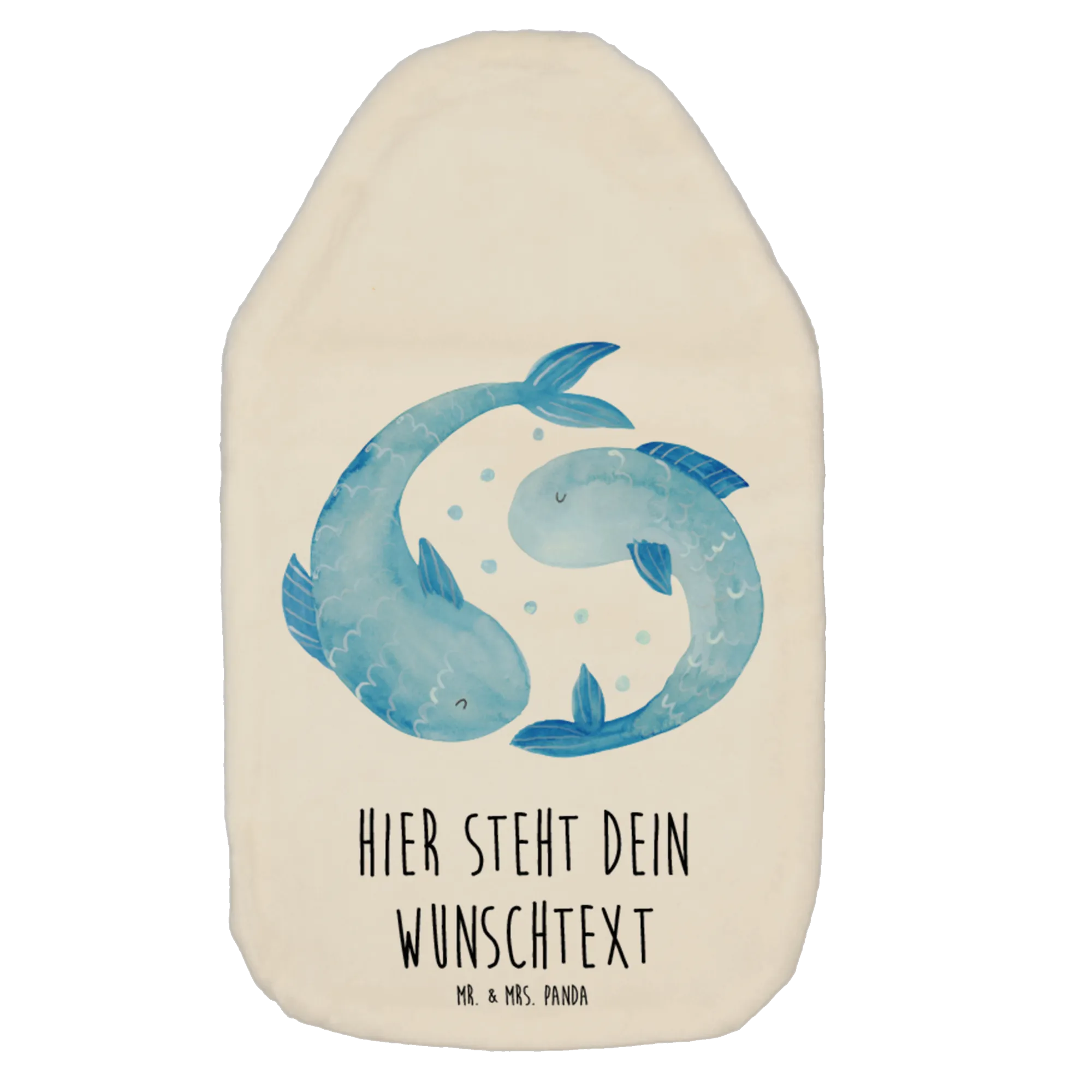 Entdecke die wunderschöne, personalisierte Wärmflasche mit dem Motiv "Sternzeichen Fische" von Mr. & Mrs. Panda – einfach perfekt für alle, die die Zartheit und Empathie der Fische zu schätzen wissen!