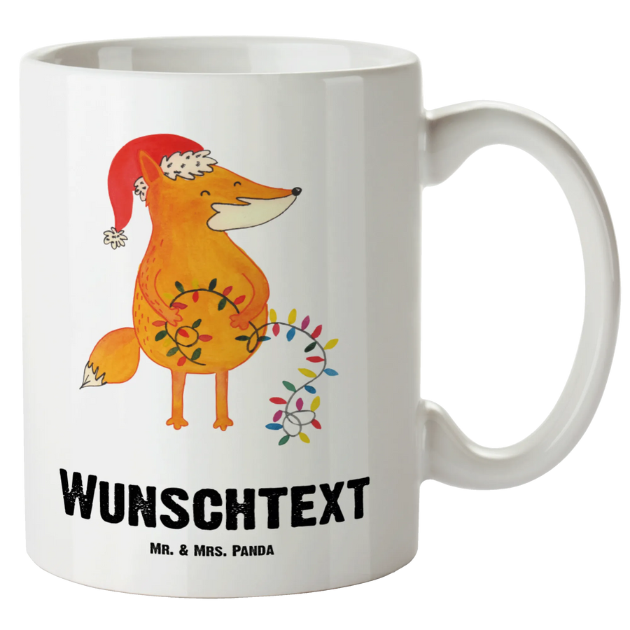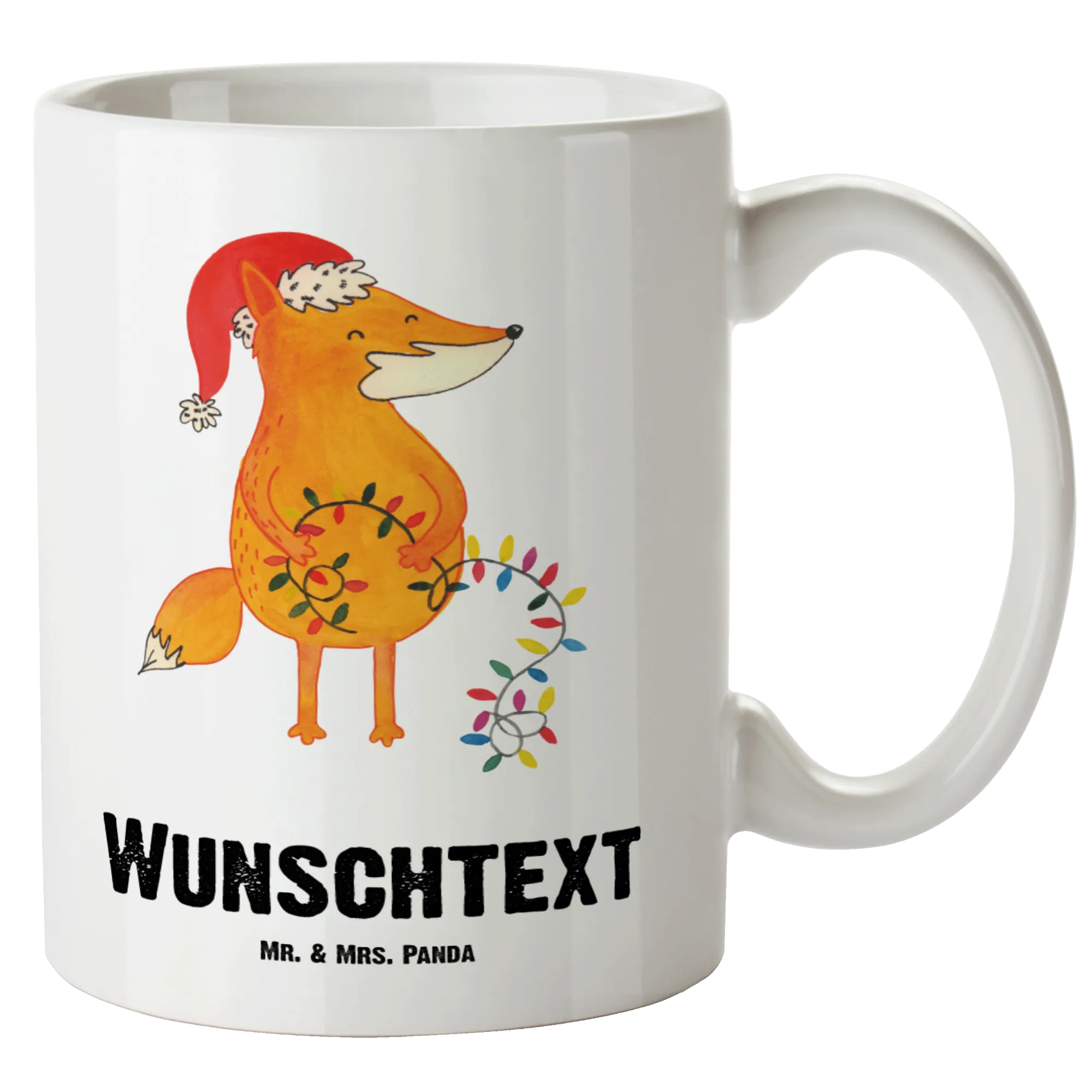 Die personalisierte XL Tasse 'Fuchs Weihnachten' von Mr. & Mrs. Panda ist das perfekte Geschenk für die gemütlichen Wintermonate. Ideal geeignet als große Tasse für Tee, Kaffee oder heiße Schokolade, bringt sie mit ihrem herzlichen Design nicht nur Wärme ins Herz, sondern auch in den Alltag. Der liebevoll gezeichnete Weihnachtsfuchs, der eine festliche Mütze trägt und mit einer bunten Lichterkette spielt, zaubert jedem ein Lächeln ins Gesicht.
