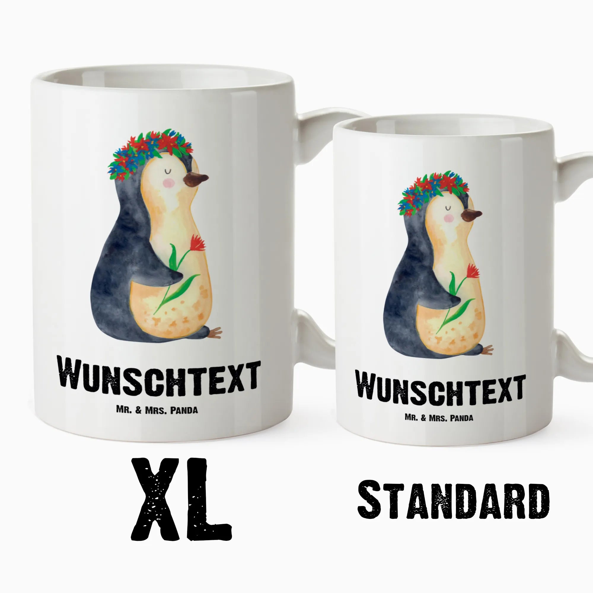 Personalisierte XL Tasse Pinguin Blumenkranz