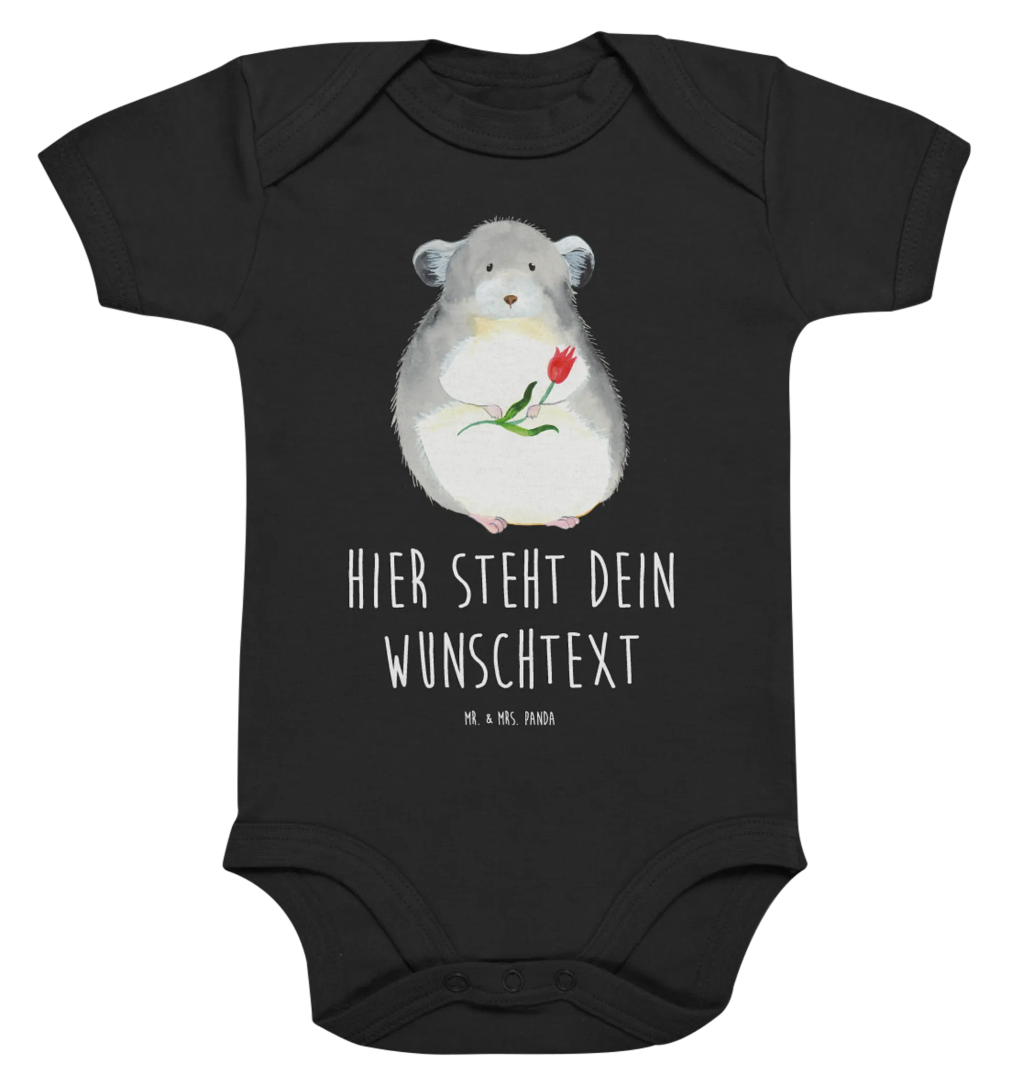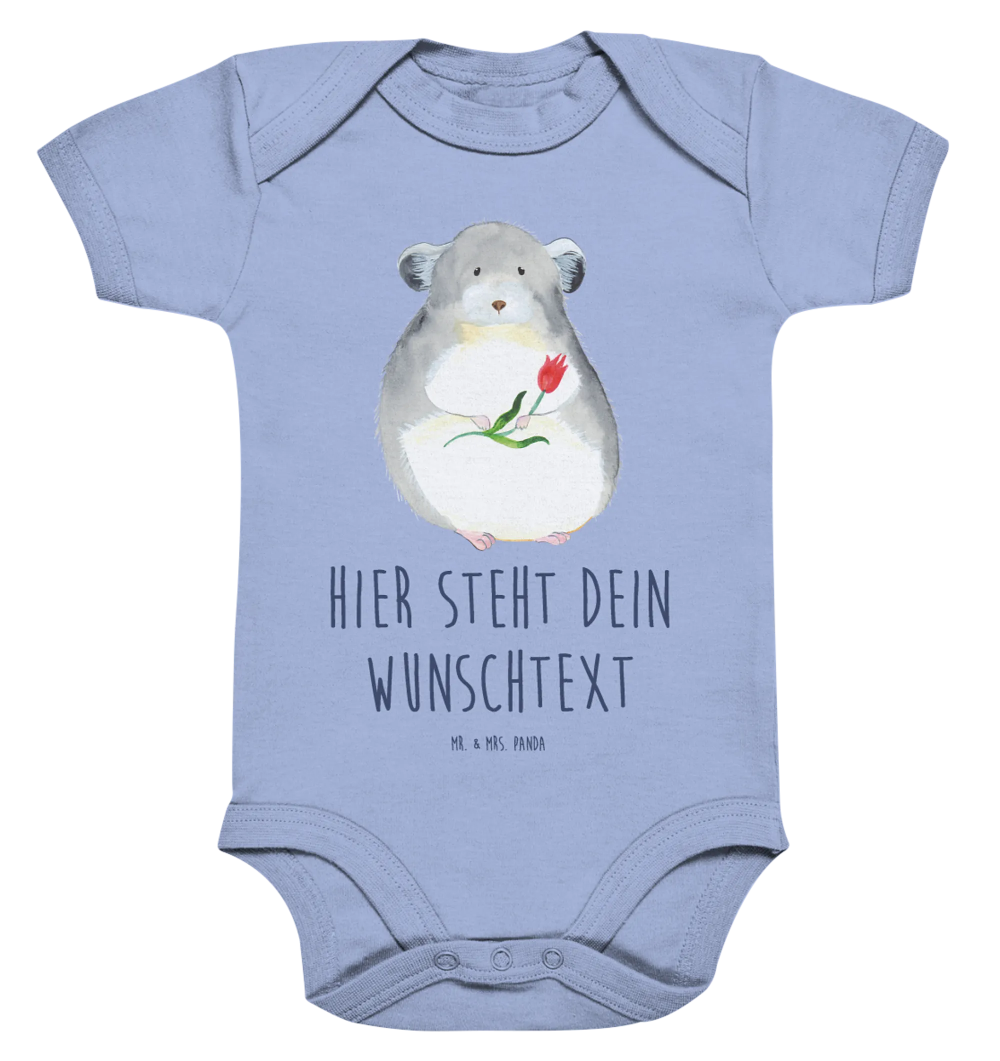 Mach das Geschenk zu einem unvergesslichen Erlebnis und wähle den personalisierten Baby Body "Chinchilla mit Blume" von Mr. & Mrs. Panda! Mit einem liebevollen Design, einer Botschaft für gute Laune und besten Materialien, wird dieser Body sicherlich zum neuen Lieblingsteil in der Babyerstausstattung! Lass Deinem kleinen Liebling die Freude und das Glück entgegenstrahlen, das er von Anfang an verdient hat!