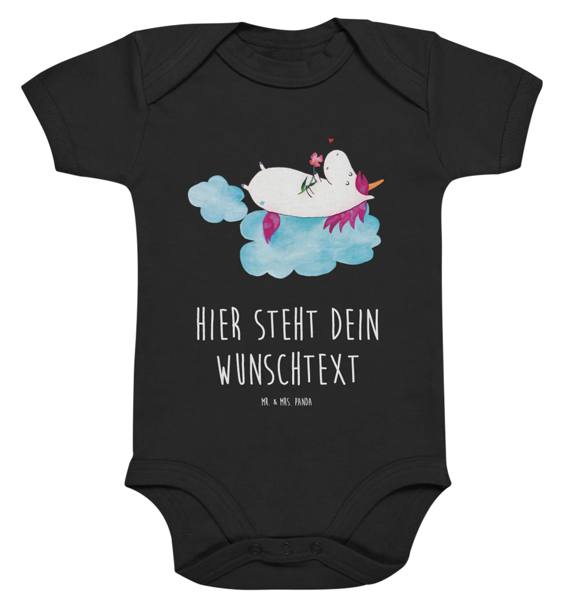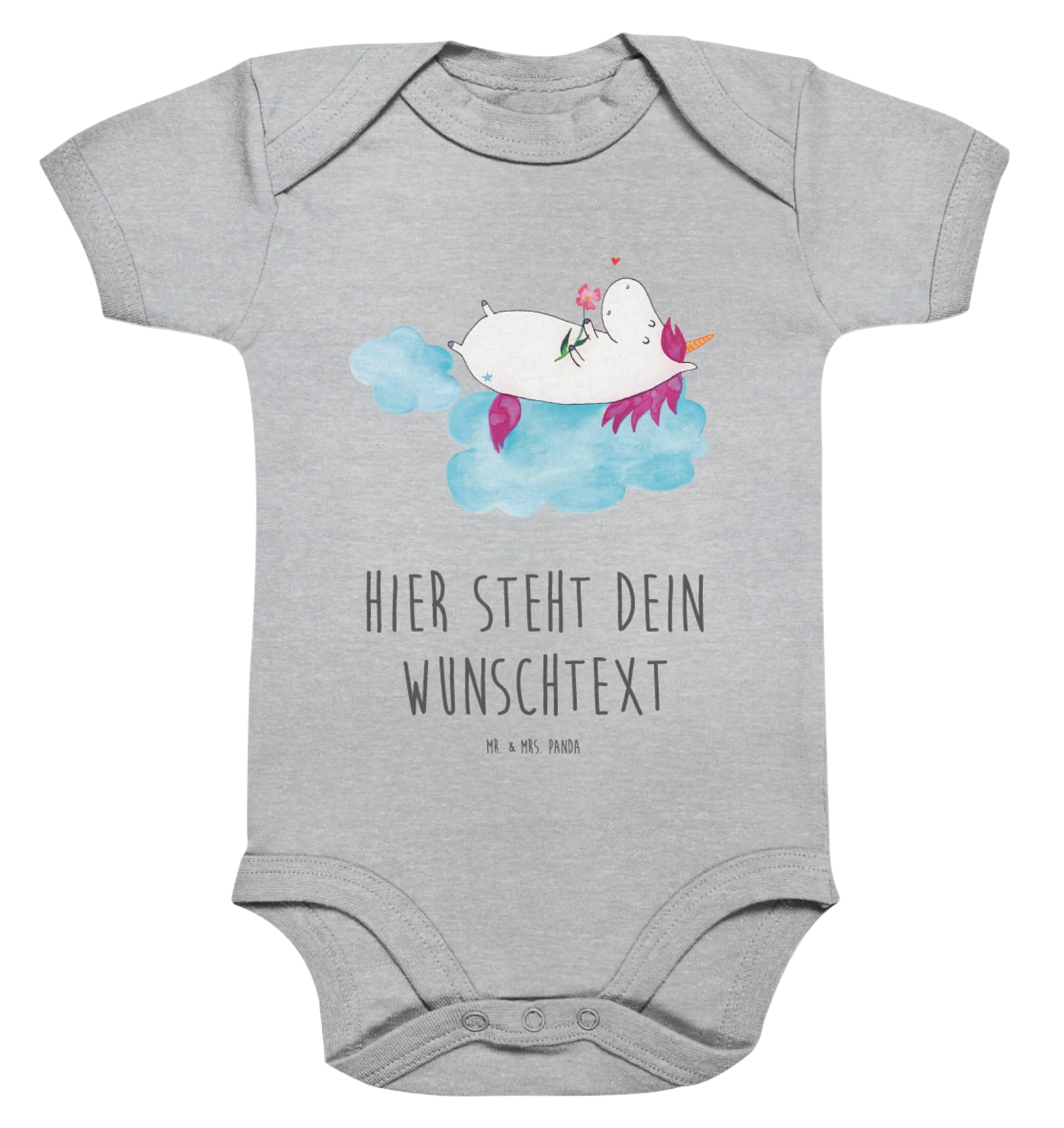 Der personalisierte Baby Body "Einhorn verliebt auf Wolke" aus der zauberhaften Einhorn-Kollektion von Mr. & Mrs. Panda ist das perfekte Geschenk für kleine Einhorn-Fans! Dieser liebevoll gestaltete Body ist nicht nur einzigartig, sondern auch mit viel Liebe zum Detail gefertigt. Das wunderbare Motiv zeigt ein süßes Einhorn, das verliebt auf einer Wolke sitzt, was jeden Baby-Look verzaubert.