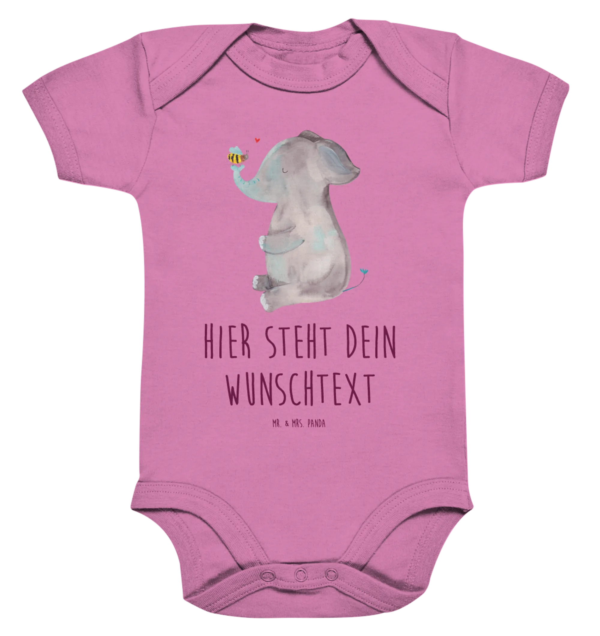Verschenke Freude und kreiere unvergessliche Erinnerungen mit unserem personalisierter Baby Body Elefant & Biene. Er wird ein geliebtes Kleidungsstück im Kleiderschrank Deines Lieblings und zaubert jedem ein Lächeln ins Gesicht. Schenke Liebe, schenke Freude, schenke einen kleinen Moment des Glücks – mit Mr. & Mrs. Panda!