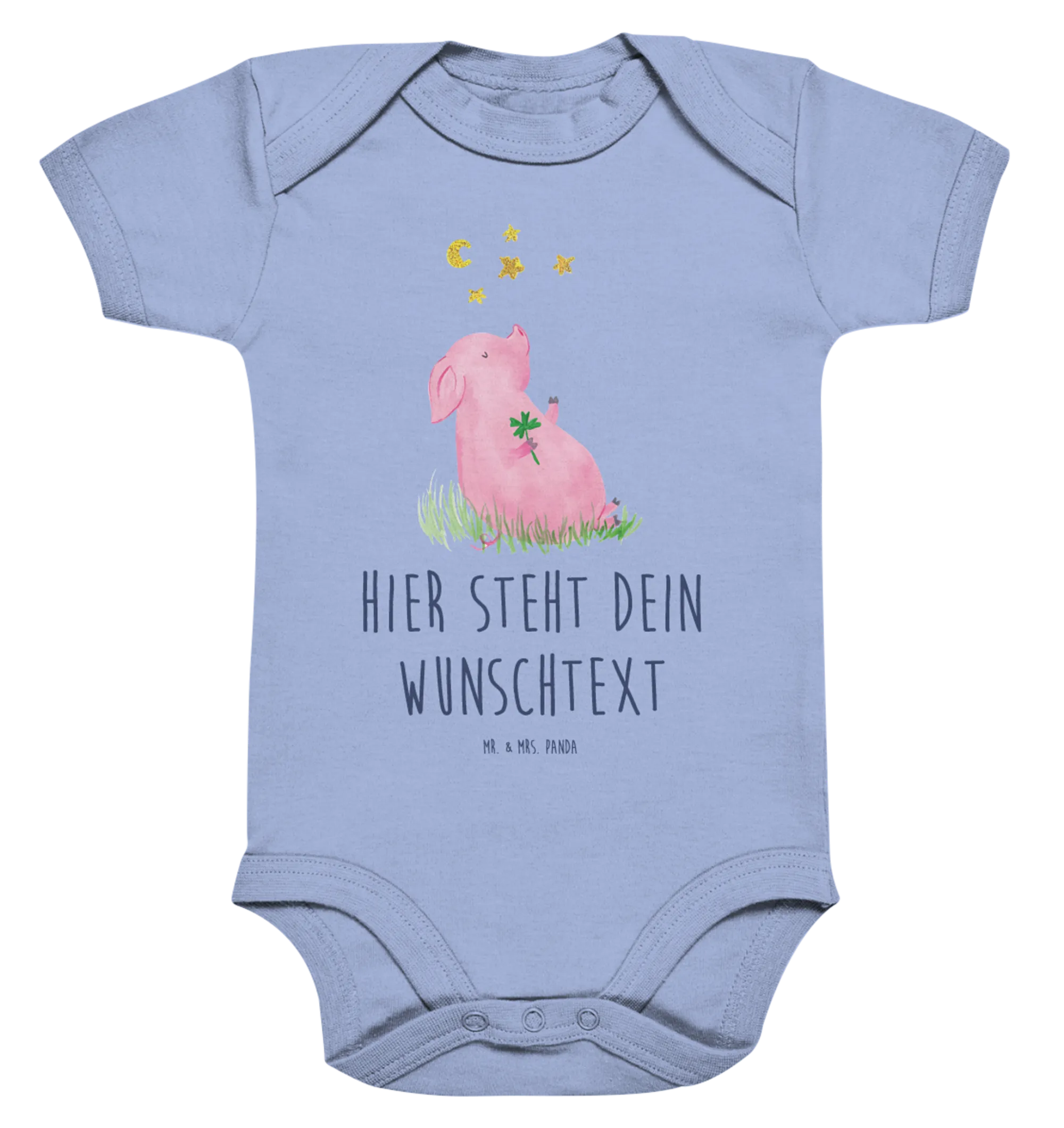 Suchst du das perfekt personalisierte Geschenk für einen kleinen Glücksbär? Dann ist der personalisierte Baby Body mit dem süßen Glücksschwein-Motiv aus der Small World Kollektion genau das Richtige für dich! Dieses herrlich niedliche Design zeigt ein kleines Schweinchen, das ein Kleeblatt hält – ein wunderbares Symbol für Glück, Freude und Zufriedenheit. Der Baby Body ist die ideale Wahl für die Erstausstattung deines kleinen Lieblings oder als ganz besonderes Geschenk zur Geburt oder zur Taufe.
