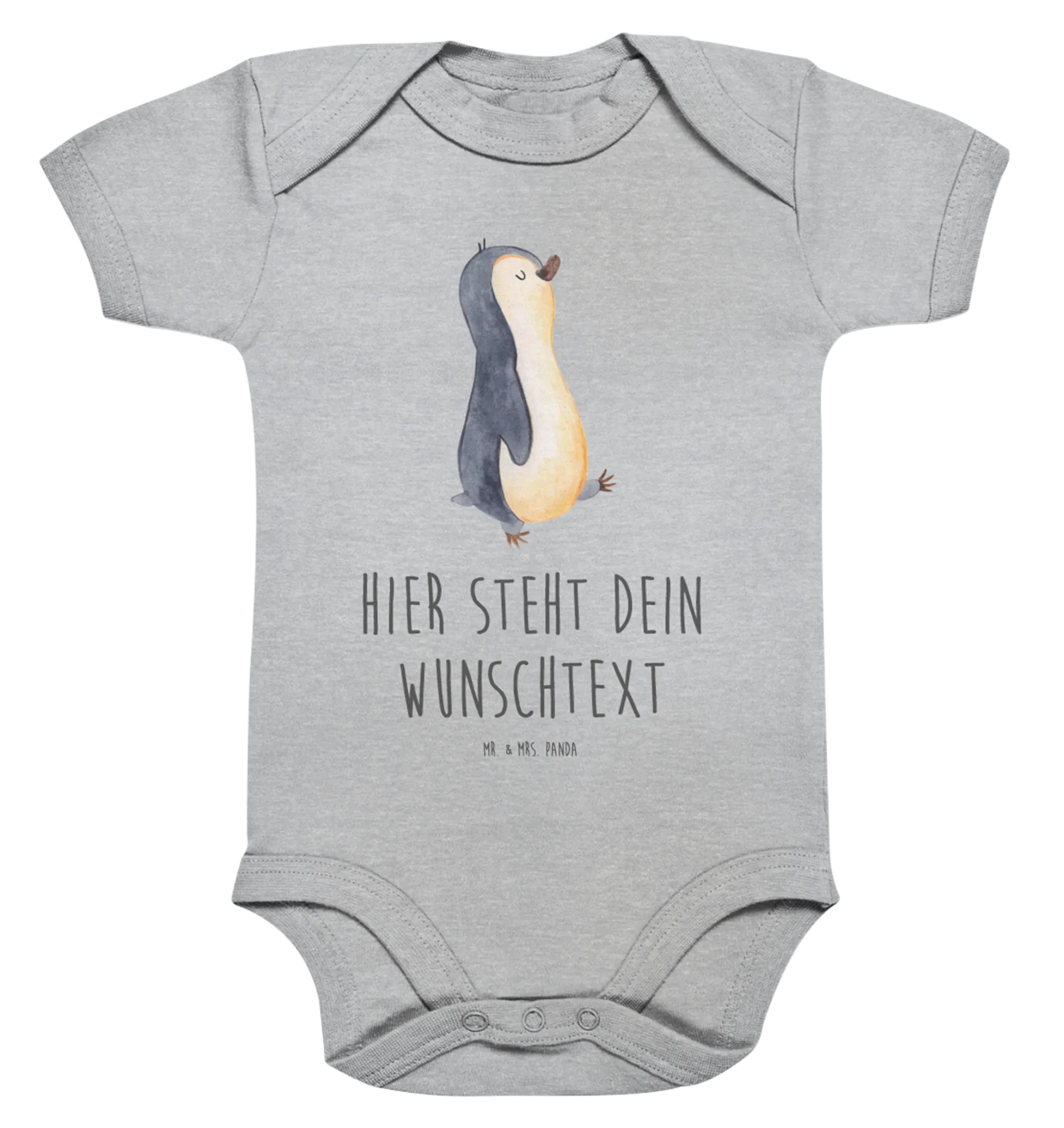 Der personalisierte Baby Body mit dem fröhlichen Motiv "Pinguin marschierend" aus der Pinguin-Kollektion von Mr. & Mrs. Panda ist das ideale Geschenk für kleine Frühaufsteher und Langschläfer!