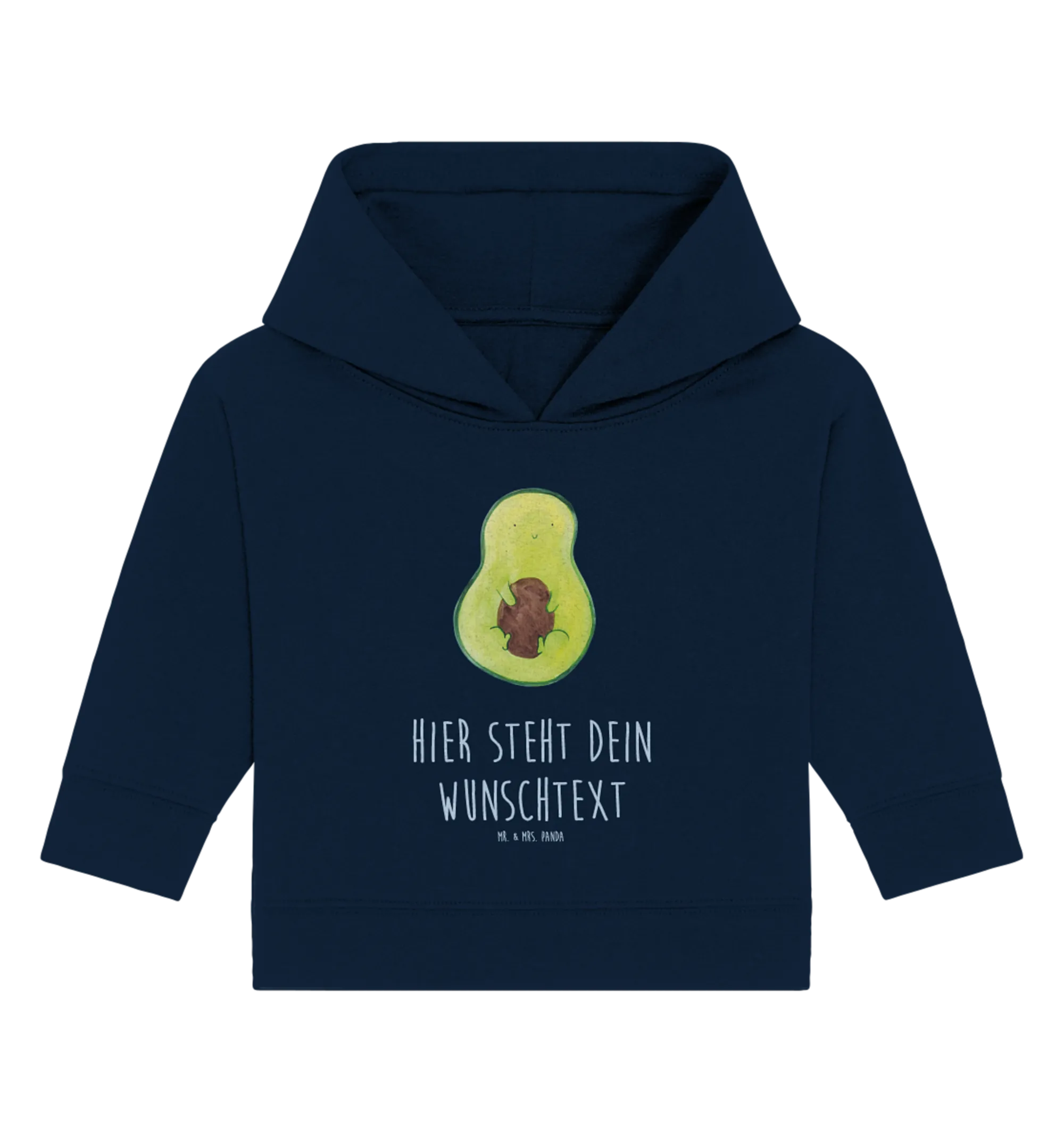 Wenn Du auf der Suche nach dem perfekten Geschenk für ein frischgebackenes Elternpaar bist, dann ist der personalisierte Baby Hoodie mit dem süßen Avocado-Motiv genau das Richtige!