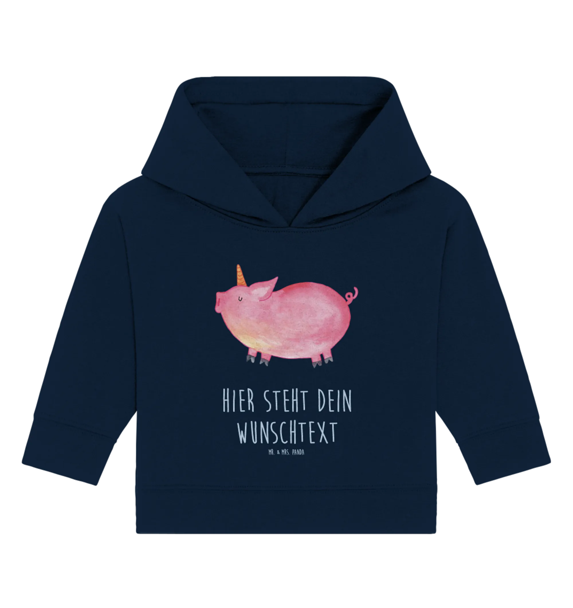 Der personalisierte Baby Hoodie "Einhorn Schweinhorn" aus der zauberhaften Einhorn-Kollektion von Mr. & Mrs. Panda ist der perfekte Begleiter für die kleinen Entdecker!
