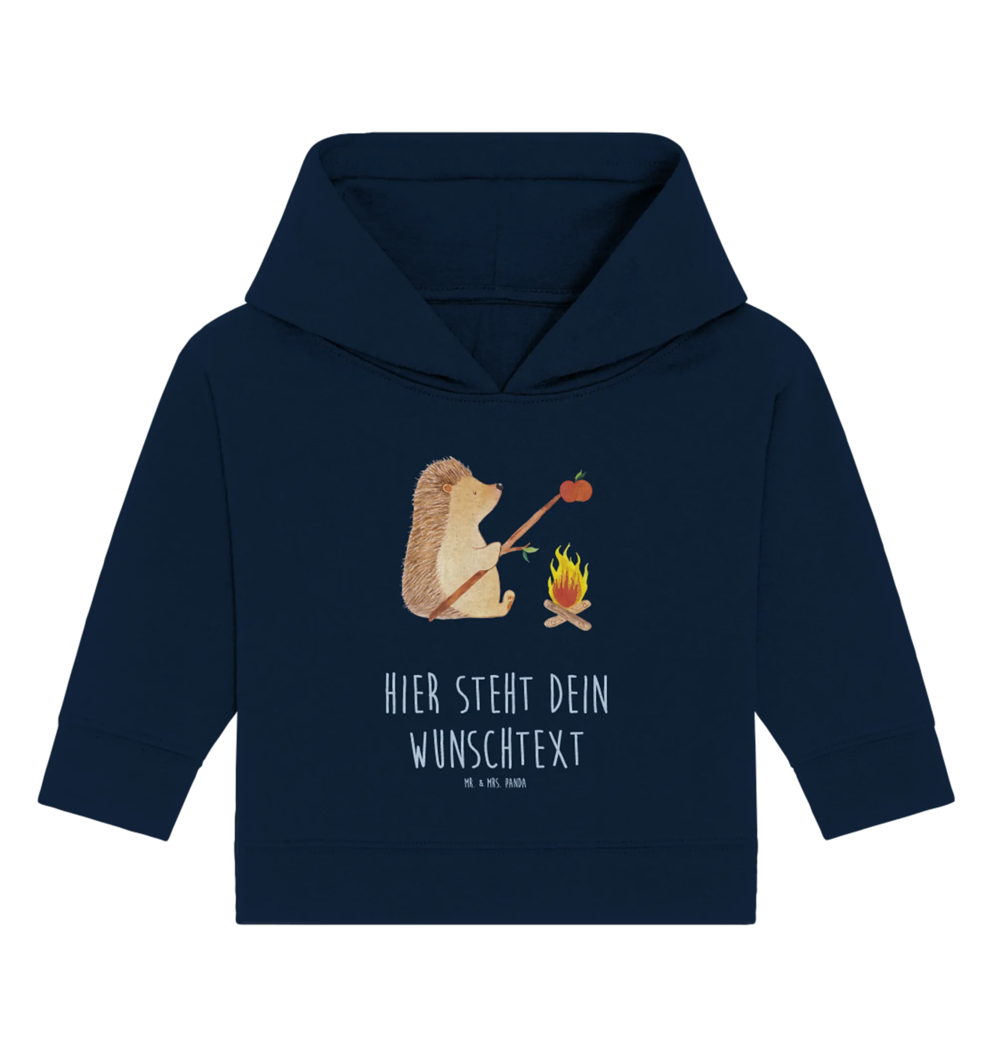 Entdecke den perfekten personalisierten Baby Hoodie mit dem süßen Motiv 'Igel grillt' aus der Small World Kollektion von Mr. & Mrs. Panda!