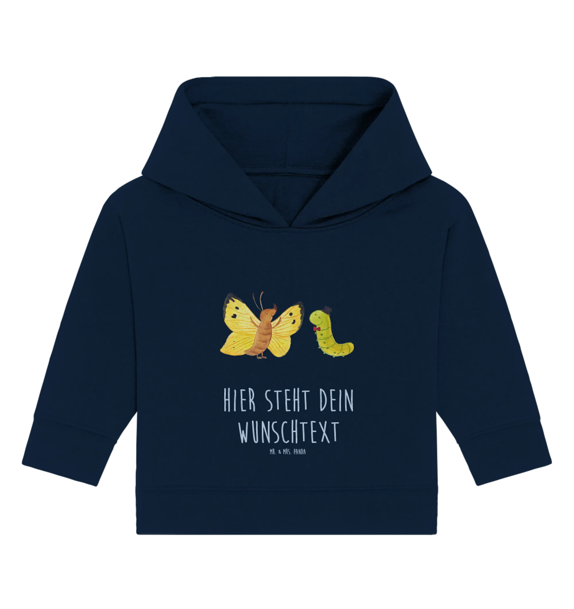 Der personalisierte Baby Hoodie mit dem lustigen Motiv von Raupe und Schmetterling aus der Small World Kollektion von Mr. & Mrs. Panda ist das perfekte Geschenk für alle kleinen Abenteurer! 🎉