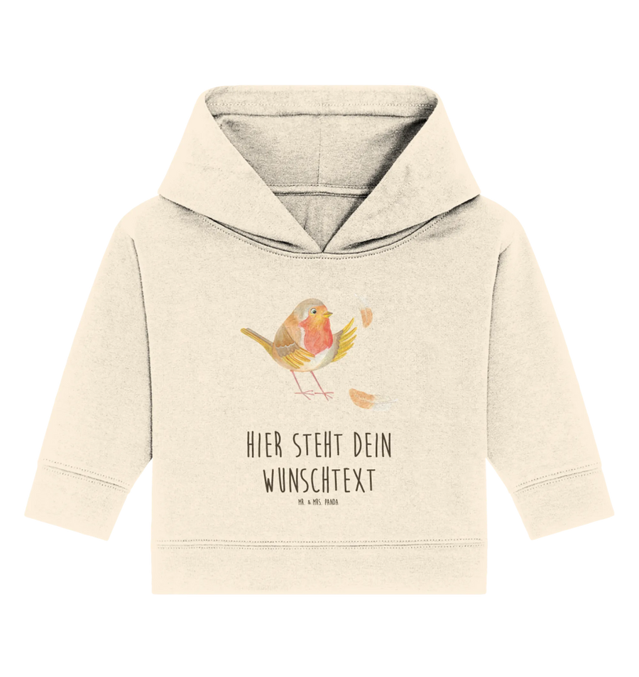 Personalisierter Baby Hoodie Rotkehlchen Federn - 12. - 18. Monat - Natural Raw