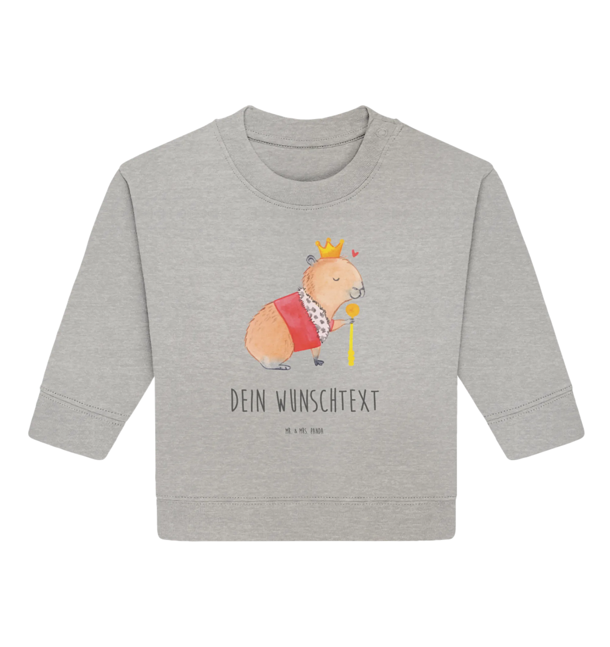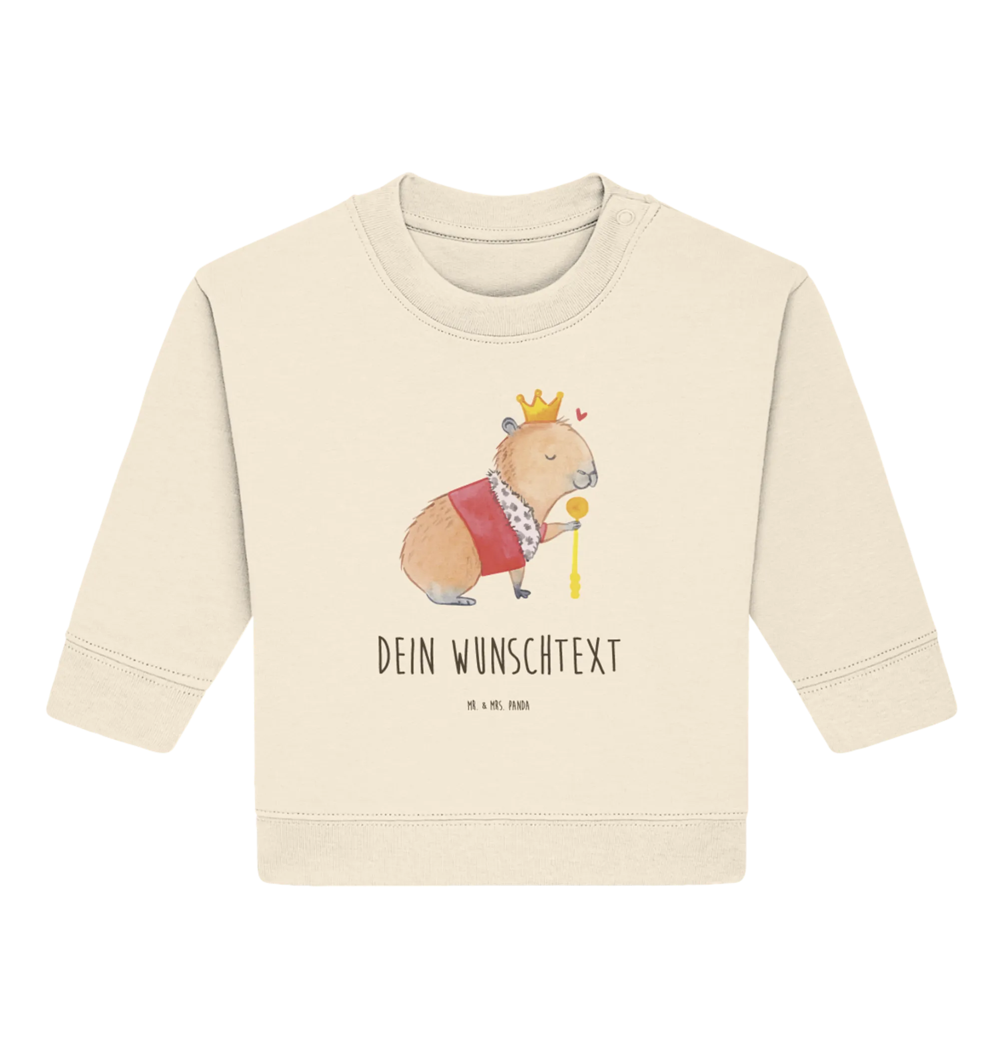 Der personalisierte Baby Pullover mit dem besonderen Motiv "Capybara König" aus unserer geliebten Small World Kollektion ist ein ideales Geschenk für jeden kleinen König oder jede kleine Königin. Das angepasste Design sorgt dafür, dass sich Dein kleiner Liebling nicht nur wohlfühlt, sondern auch ganz besonders aussieht. Egal ob zur Geburt, zur Taufe oder als Nikolausgeschenk – dieser Pullover wird mit Sicherheit ein treuer Begleiter im Kleiderschrank des Babys.