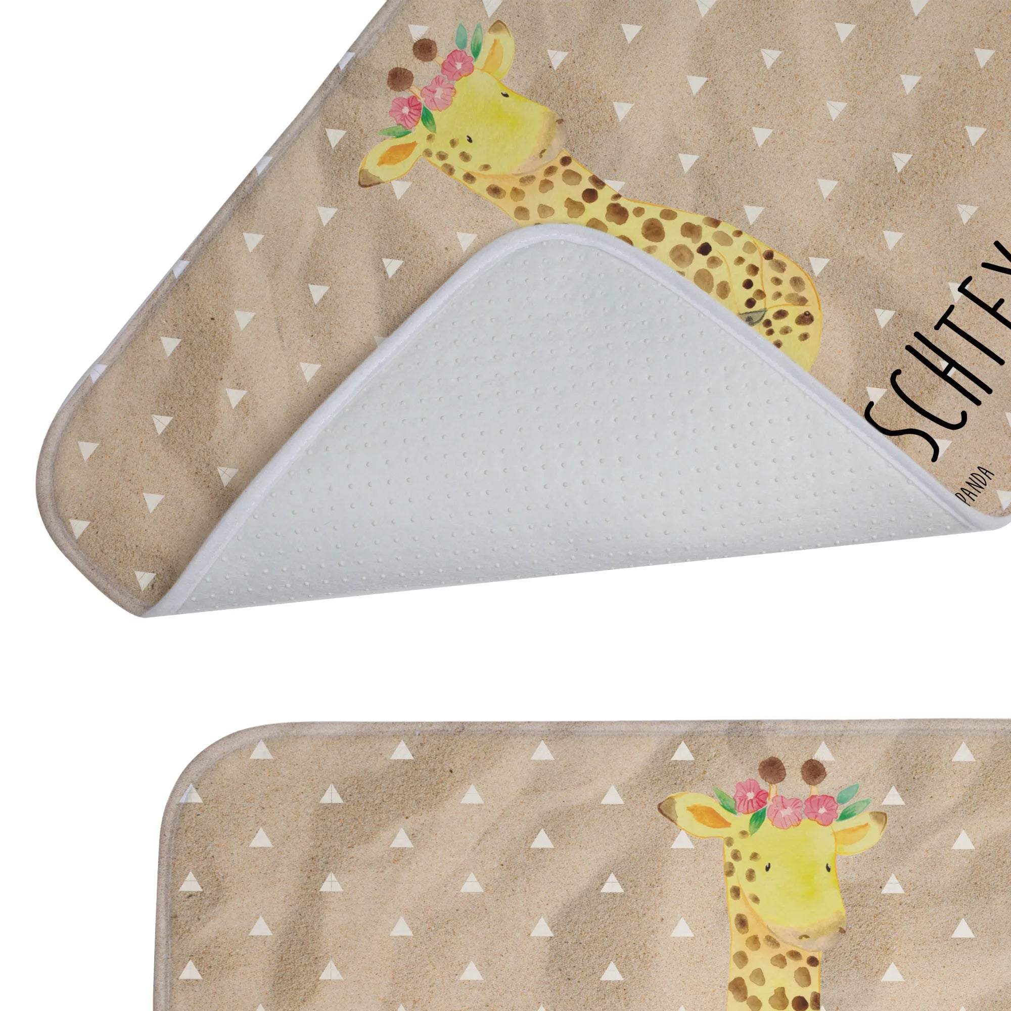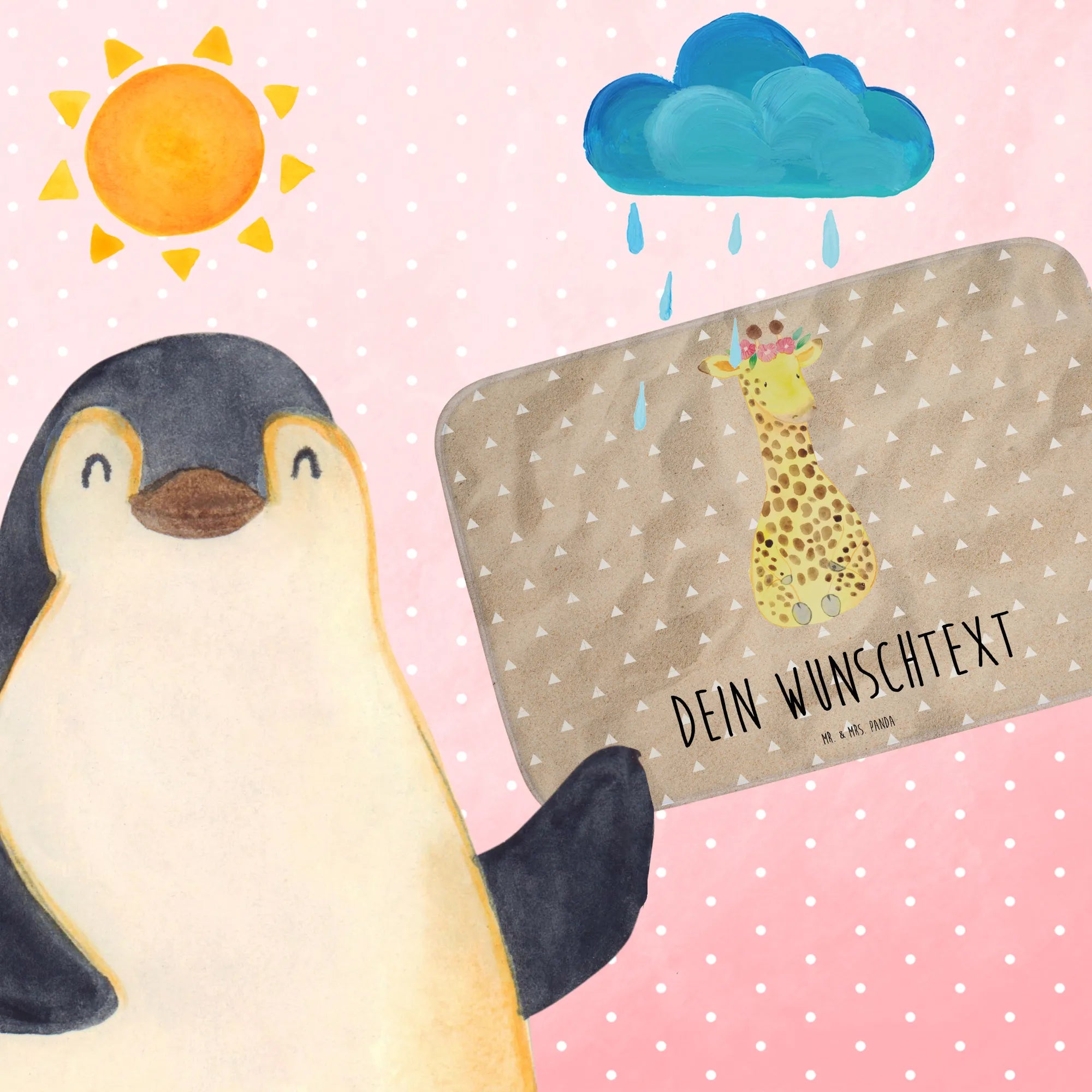 Entdecke die zauberhafte Welt des personalisierten Badvorlegers mit dem süßen Motiv der Giraffe im Blumenkranz aus der fantastischen Afrika-Kollektion von Mr. & Mrs. Panda! Dieser einzigartige Badvorleger ist mehr als nur eine fügsame Ergänzung zu deinem Badezimmer – er erzählt eine Geschichte von Abenteuerlust, Selbstliebe und der Schönheit der Natur.
