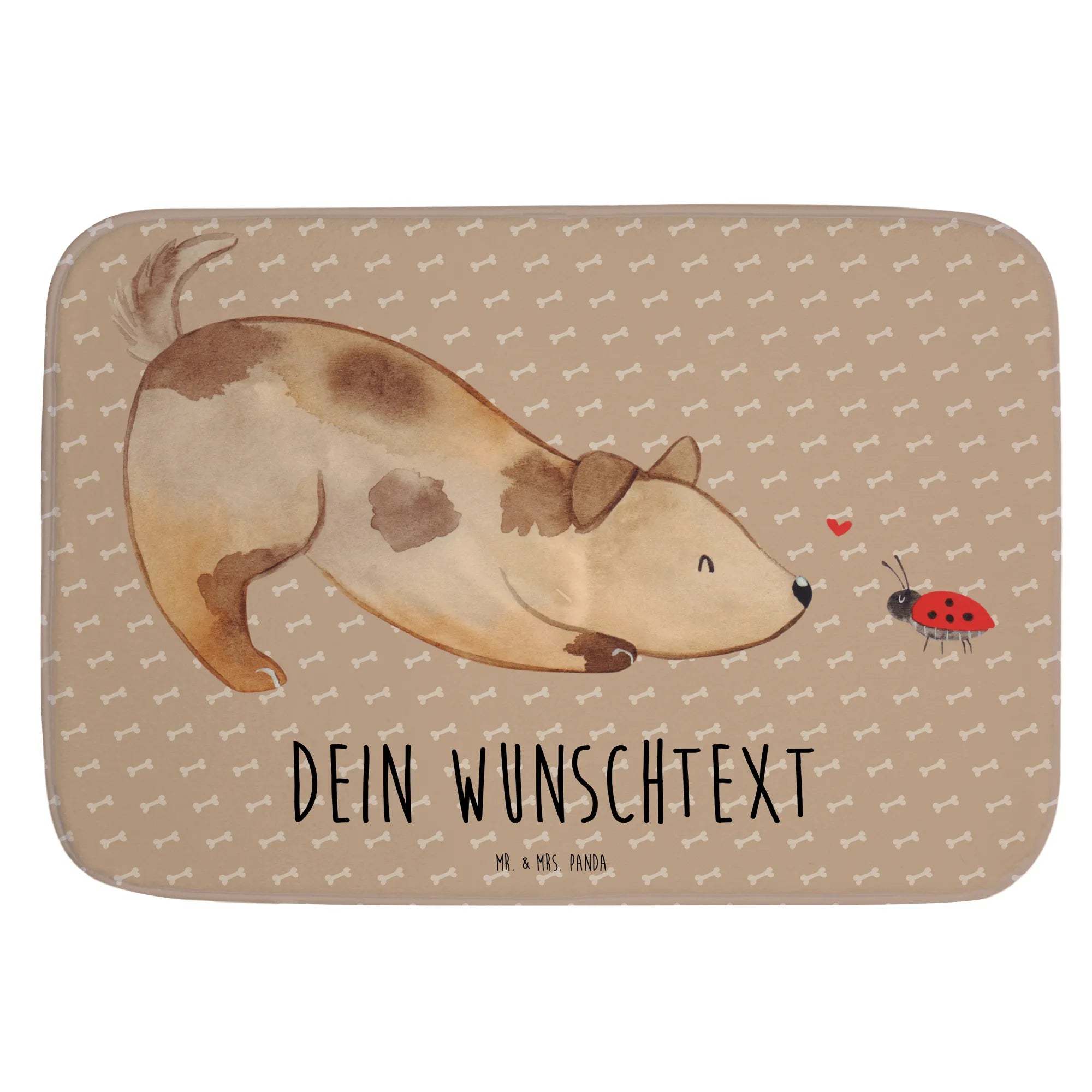 Mach dein Badezimmer noch einladender mit unserem personalisierten Badvorleger Hund Marienkäfer aus der Hunde Kollektion! Dieser wundervolle Badteppich ist nicht nur ein echter Hingucker, sondern spendet auch ein Gefühl von Gemütlichkeit und Sicherheit.