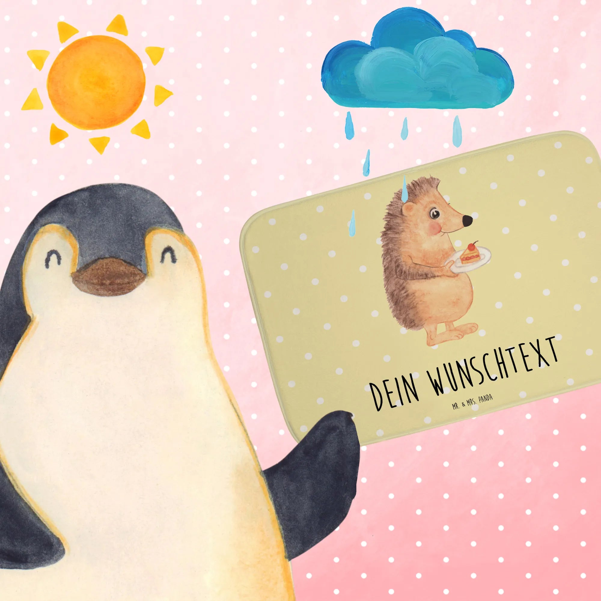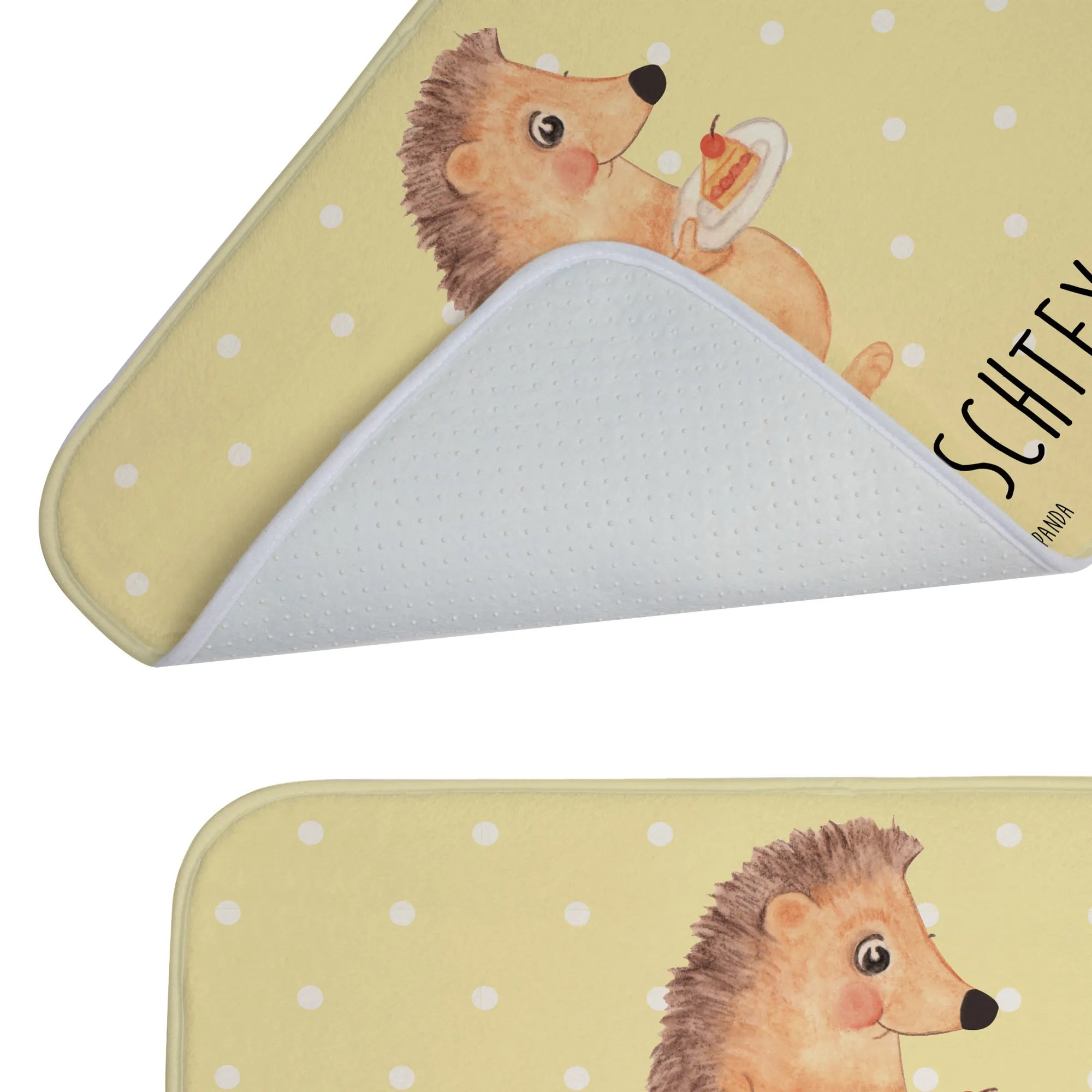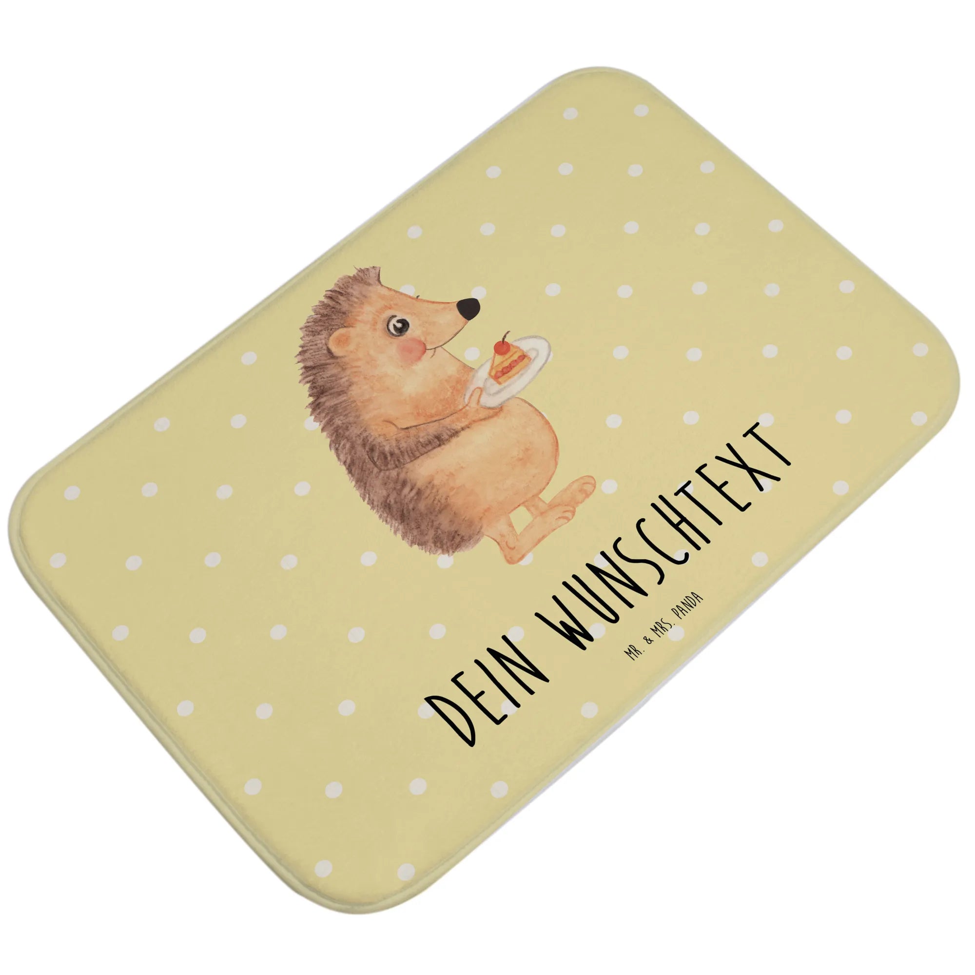 Personalisierter Badvorleger Igel mit Kuchenstück – Mr. & Mrs. Panda
