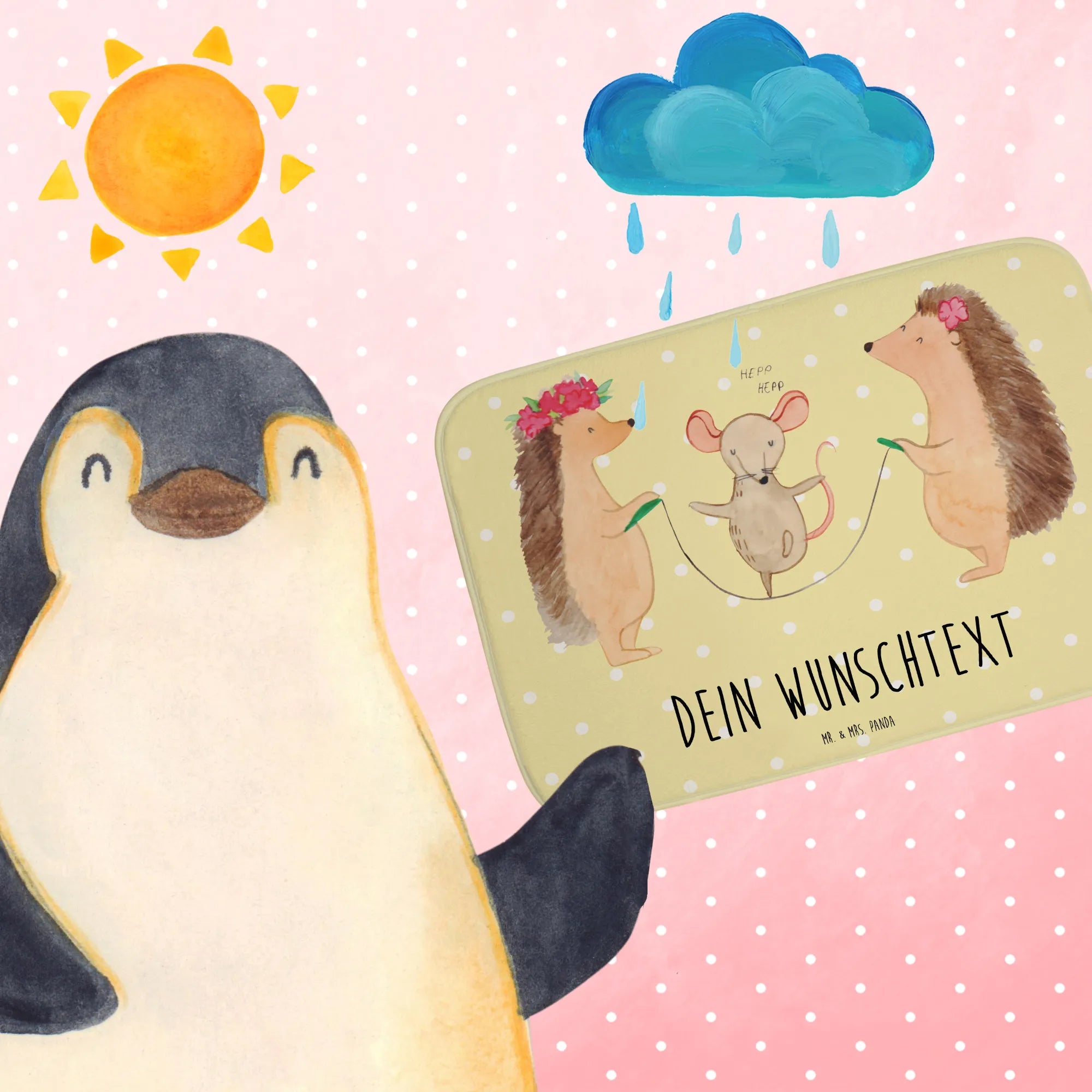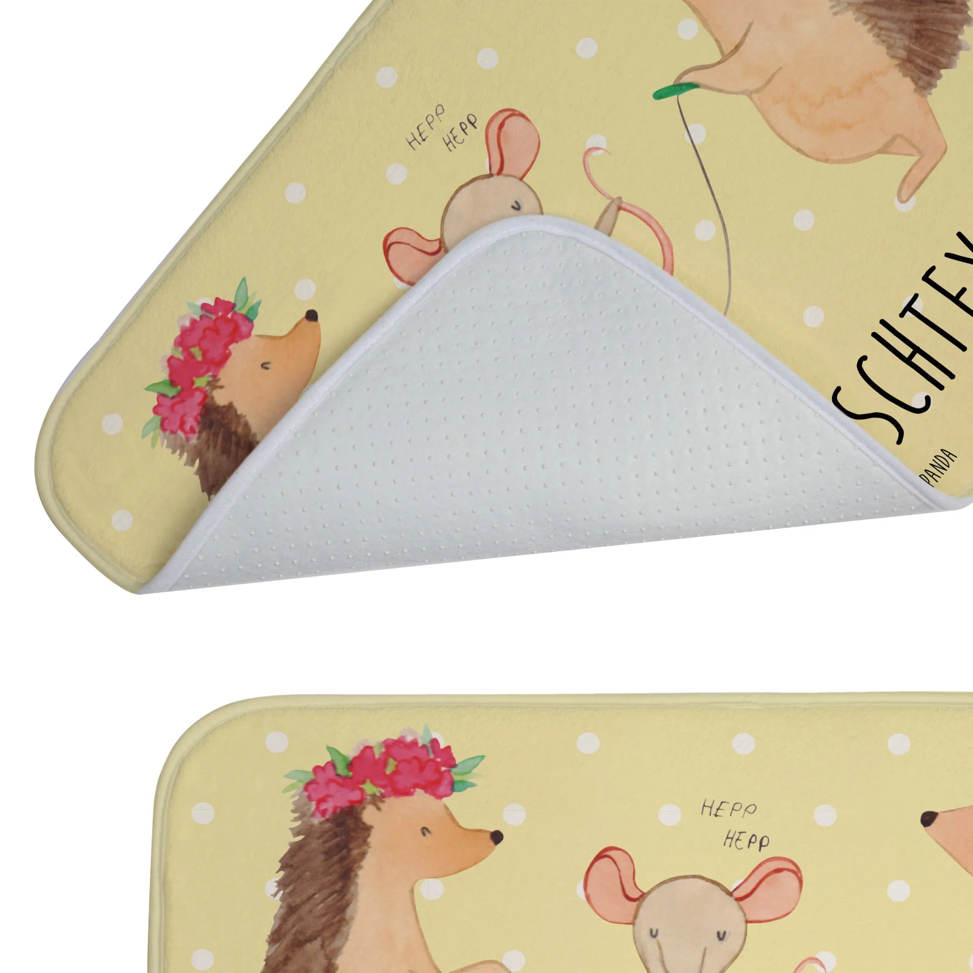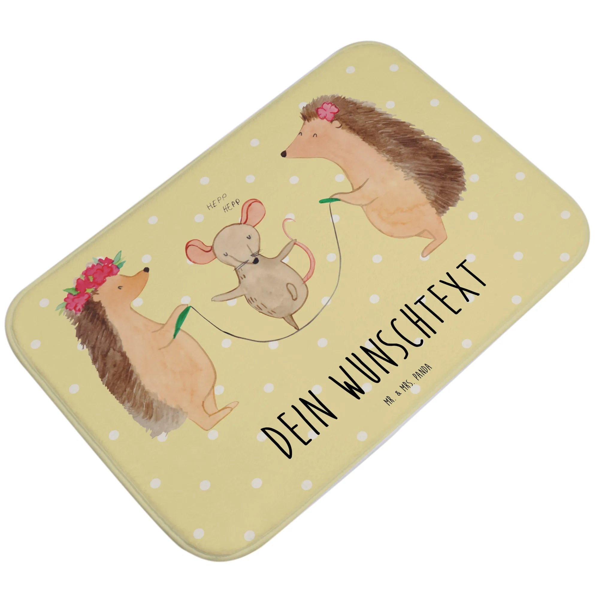 Personalisierter Badvorleger Igel Seilhüpfen – Mr. & Mrs. Panda