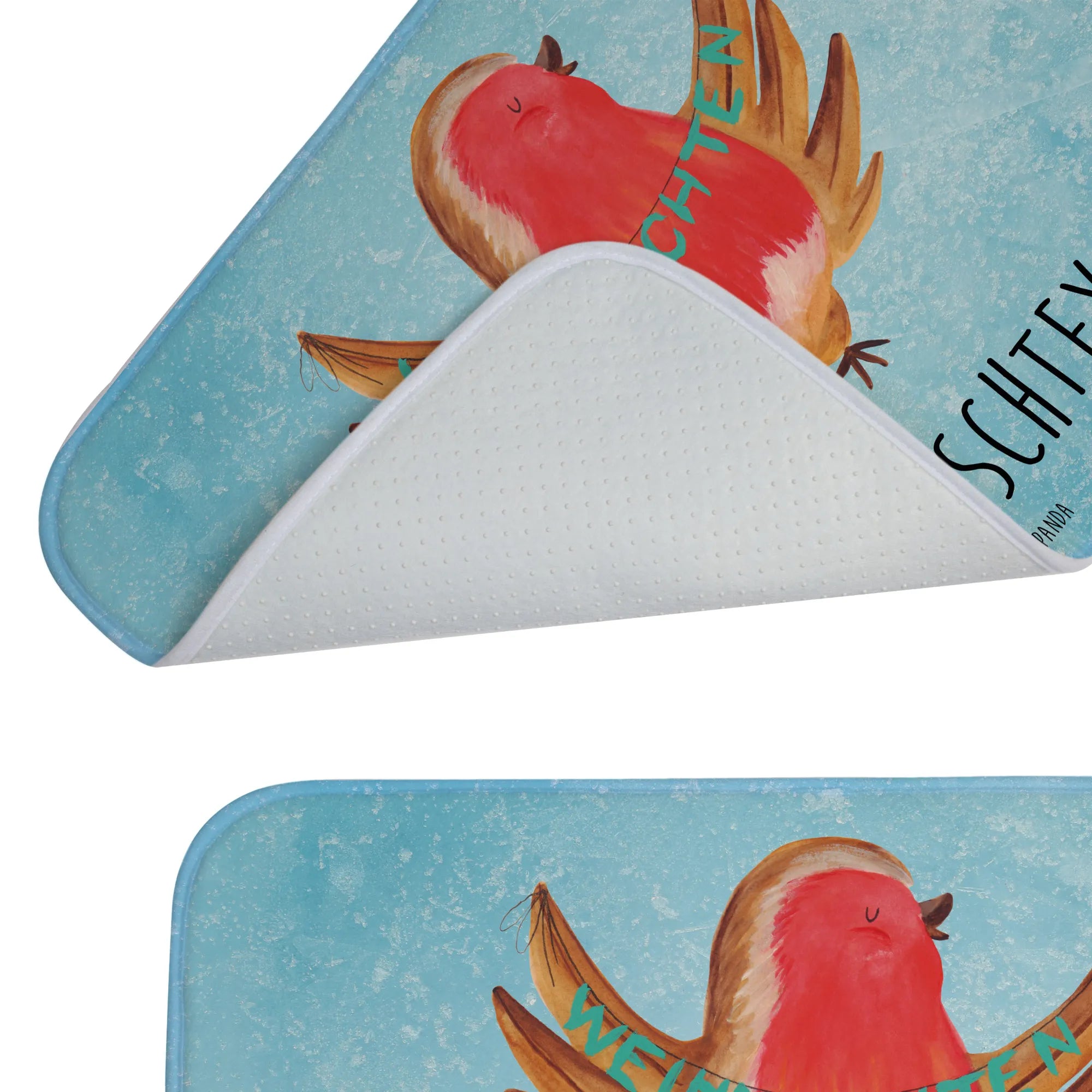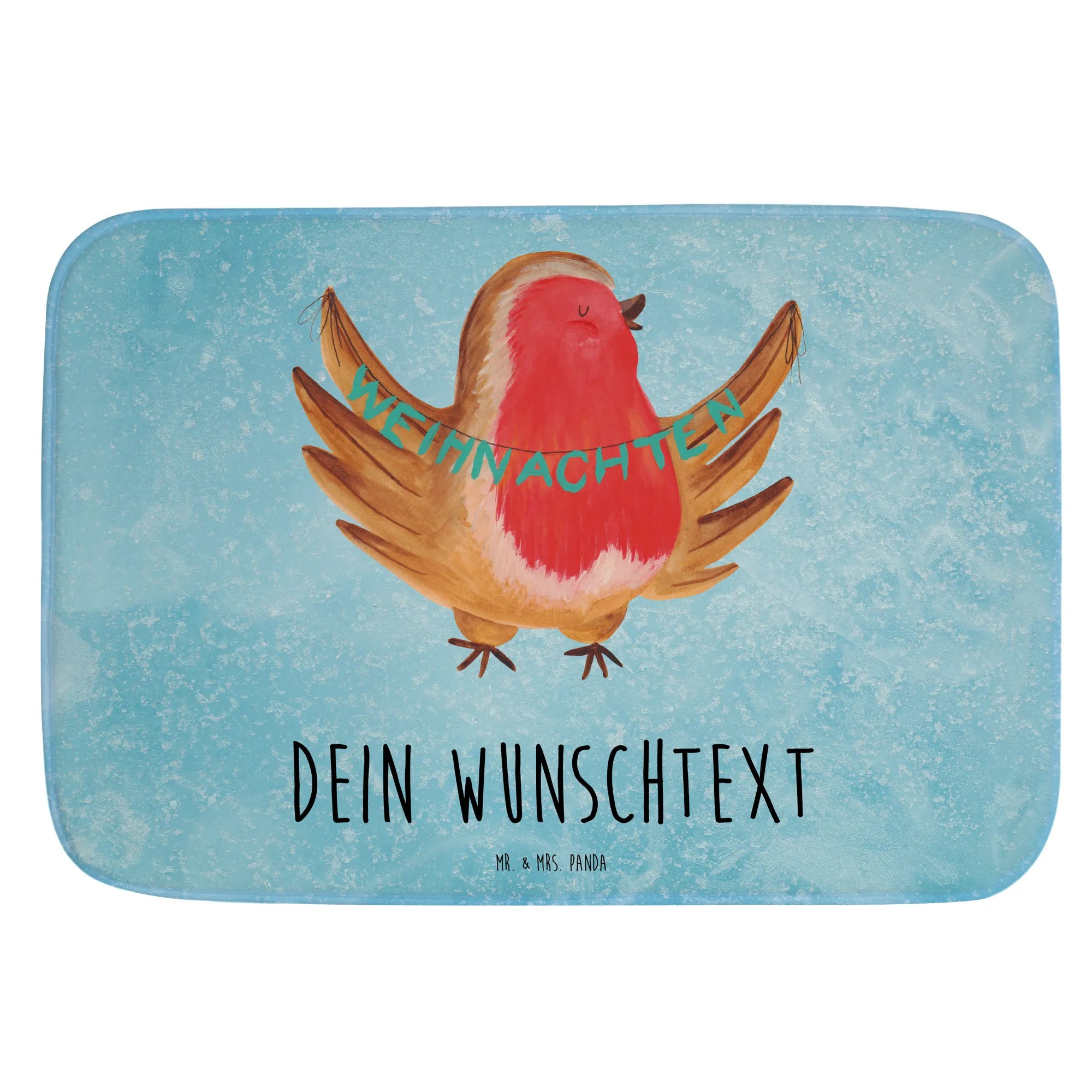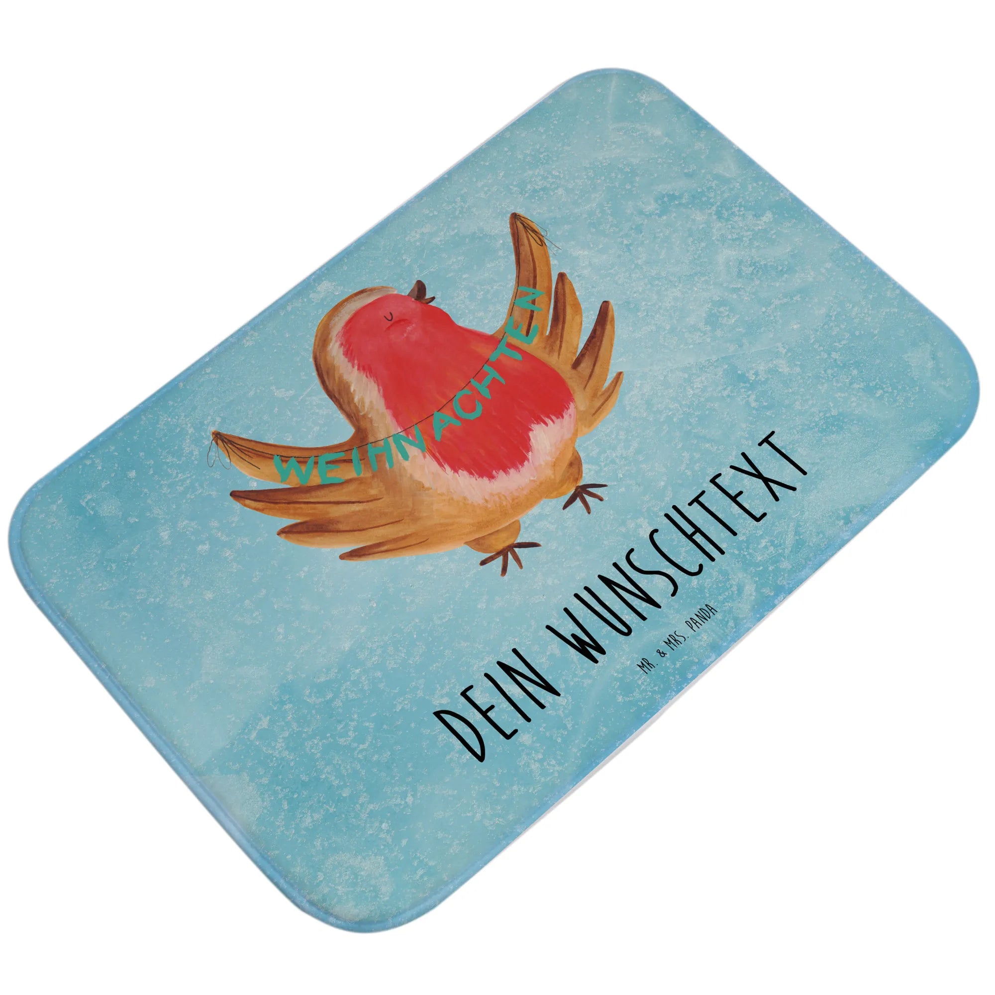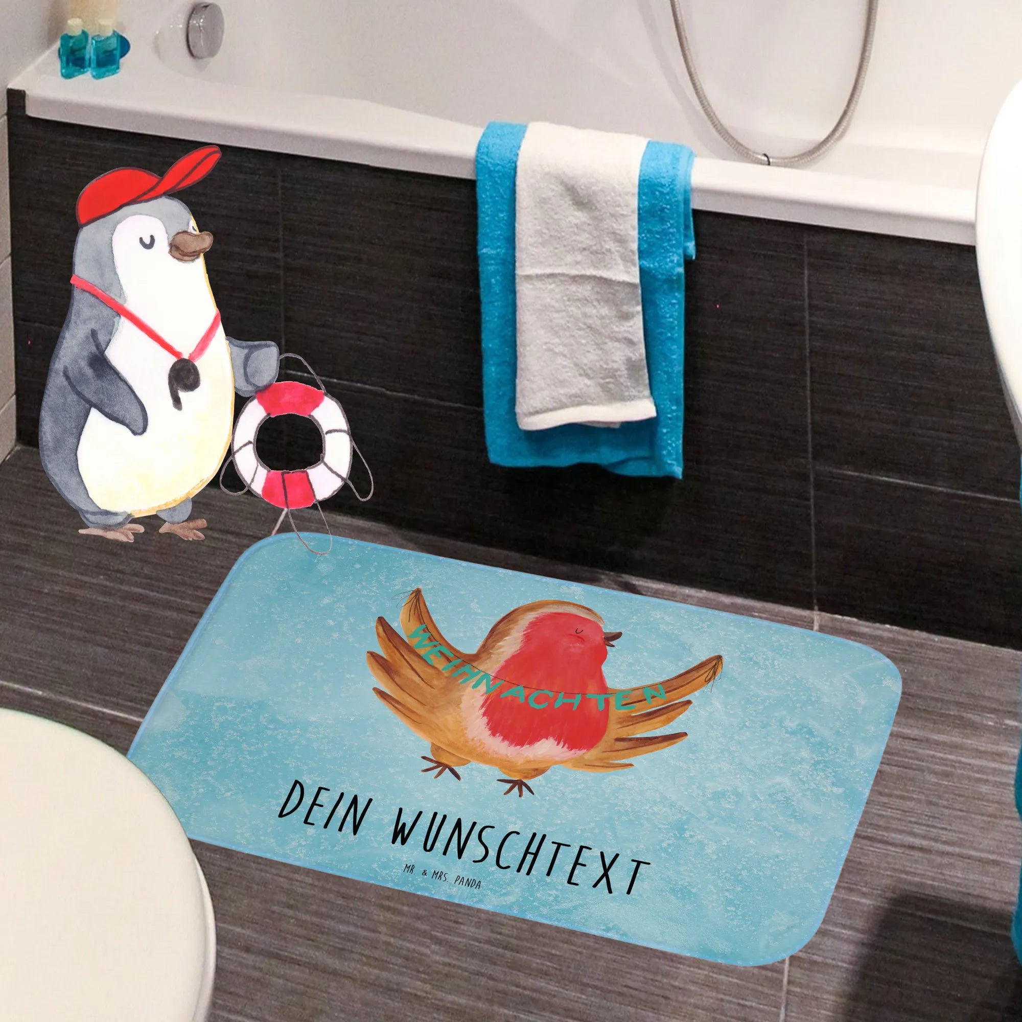 Verschenke weihnachtliche Gemütlichkeit und Persönlichkeit – mit der Personalisierte Badematte Rotkehlchen Weihnachten von Mr. & Mrs. Panda. 💙