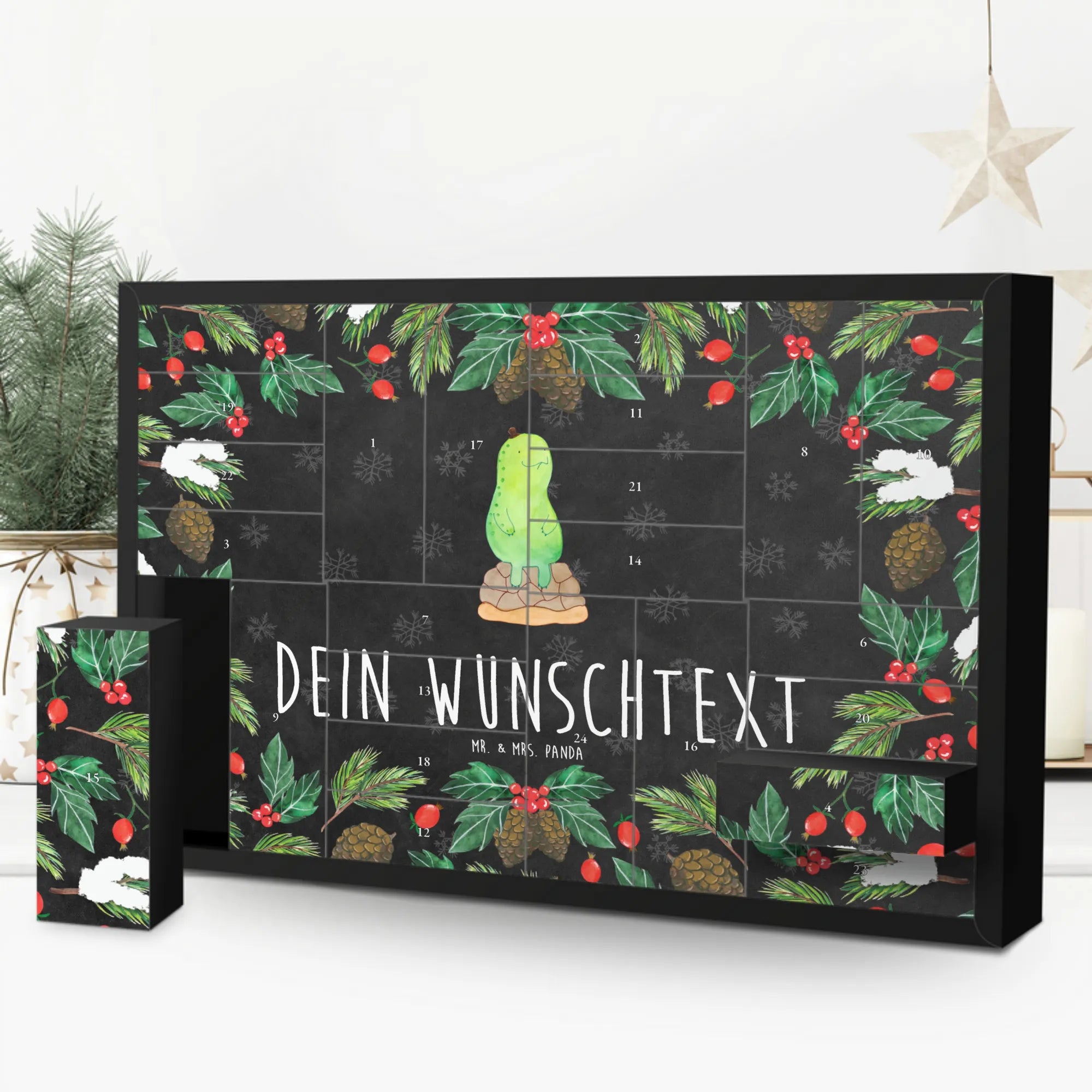 Der personalisierte befüllbare Adventskalender 'Schildkröte pausiert' von Mr. & Mrs. Panda ist das perfekte Geschenk für alle, die Wert auf Achtsamkeit und Entschleunigung legen. In dieser hektischen Zeit ist es wichtig, sich regelmäßig eine Pause zu gönnen, und dieser Adventskalender bringt genau das in dein Zuhause.