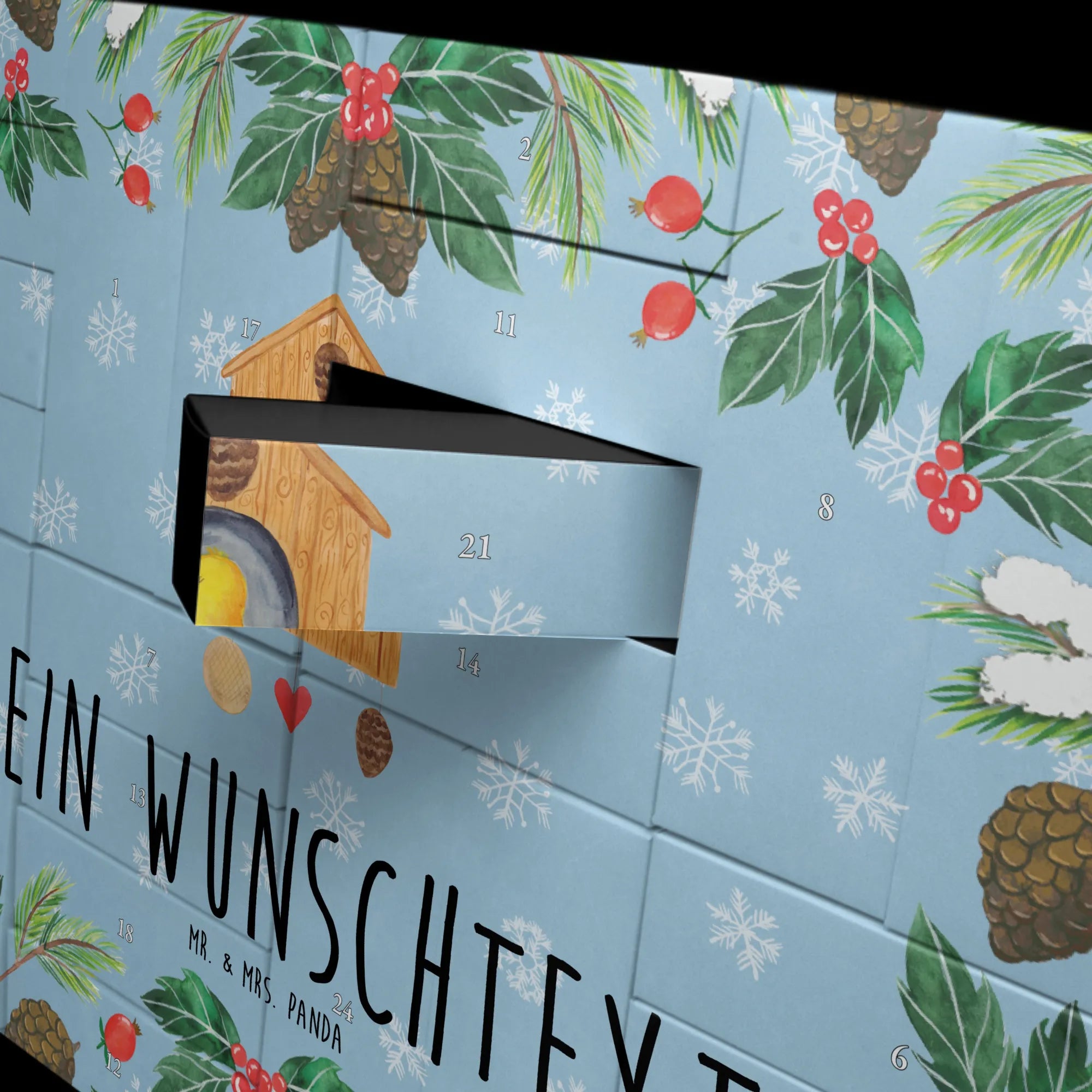 Der personalisierte befüllbare Adventskalender mit dem zauberhaften Motiv 'Vogelhaus sweet Home' von Mr. & Mrs. Panda ist das perfekte Geschenk für die gemütliche Vorweihnachtszeit. Ob für den eigenen Gebrauch oder als liebevolles Geschenk, dieser Adventskalender zaubert jedem ein Lächeln ins Gesicht.