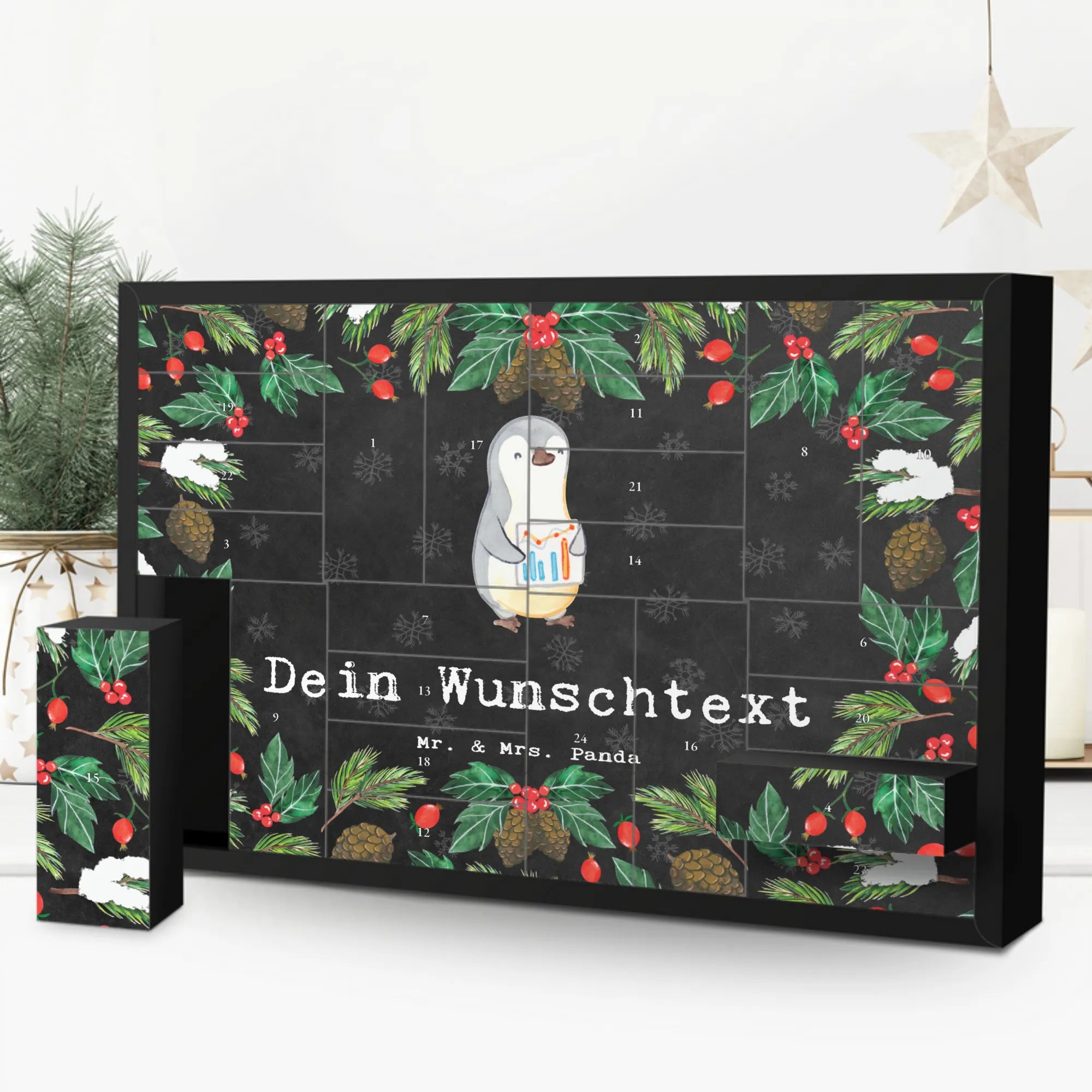 Der personalisierte befüllbare Adventskalender "Wirtschaftsanalytiker aus Leidenschaft" von Mr. & Mrs. Panda ist das perfekte Geschenk für jeden, der in der Welt der Finanzanalysen und Wirtschaftswissenschaften zu Hause ist. Dieser bezaubernde Adventskalender ist nicht nur ein einfacher Countdown für die Weihnachtszeit, sondern vielmehr ein wundervolles Dankeschön an einen besonderen Kollegen oder eine Kollegin in der Firma. Mit seinem liebevoll gestalteten Motiv eines süßen Pinguins, der stolz ein Diagramm präsentiert, ist dieser Kalender eine kreative und persönliche Art, um den Berufsalltag aufzuhellen und für die Weihnachtszeit zu feiern.