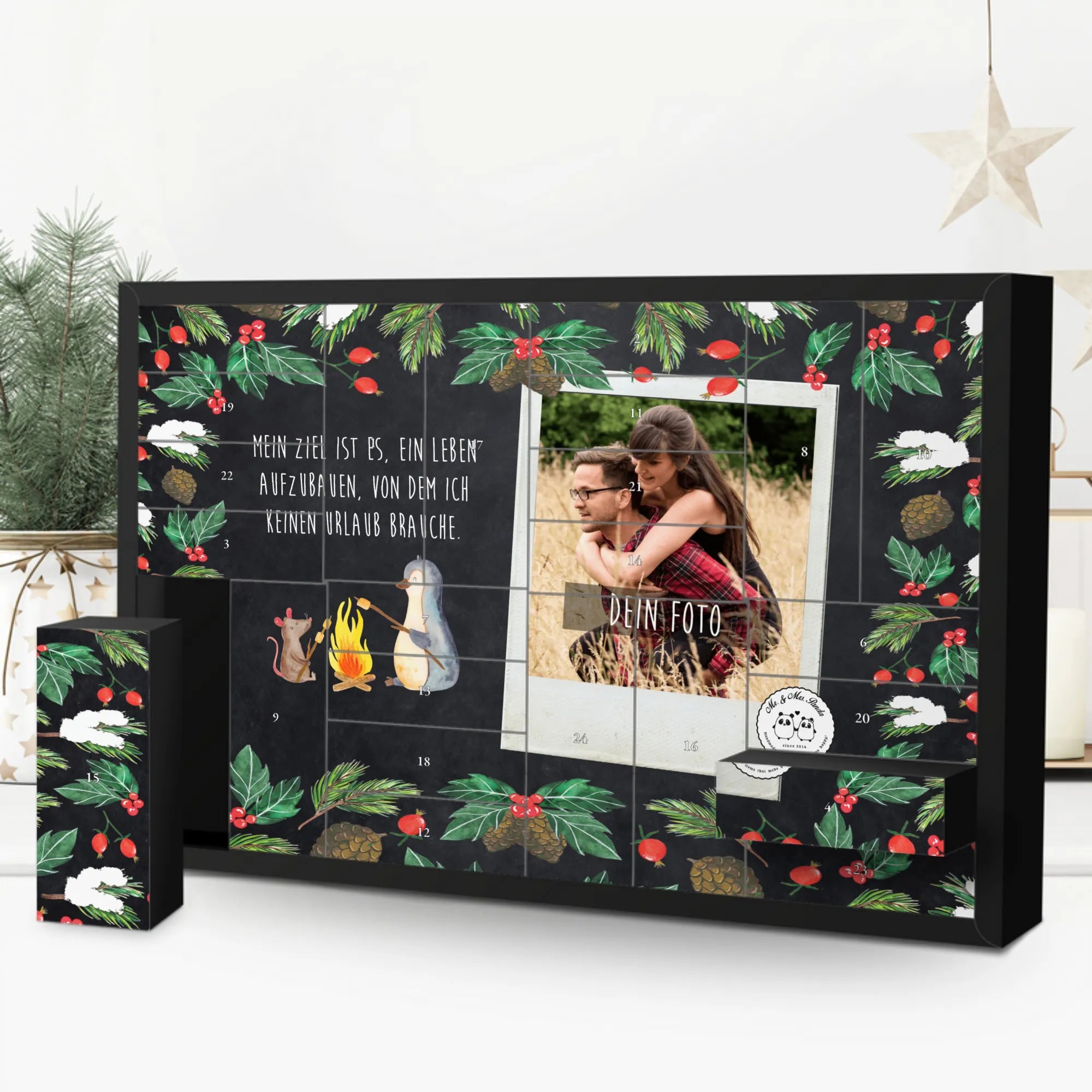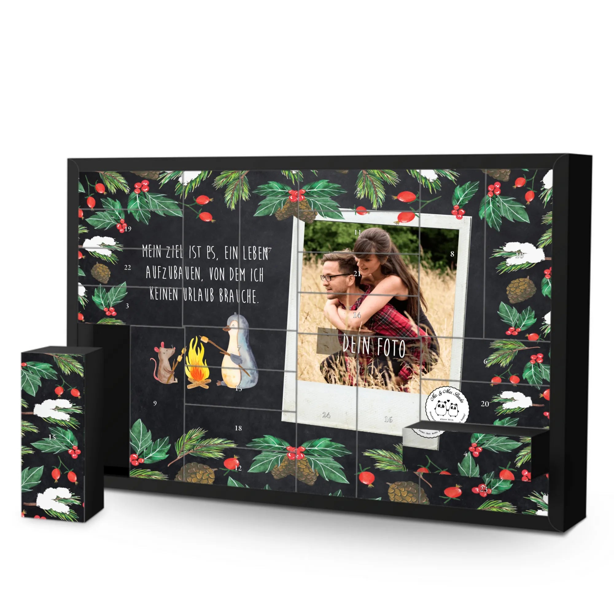 🐼 FOTO-ADVENTSKALENDER: Dein Foto auf der Front, kombiniert mit Mr. & Mrs. Panda Sprüchen.