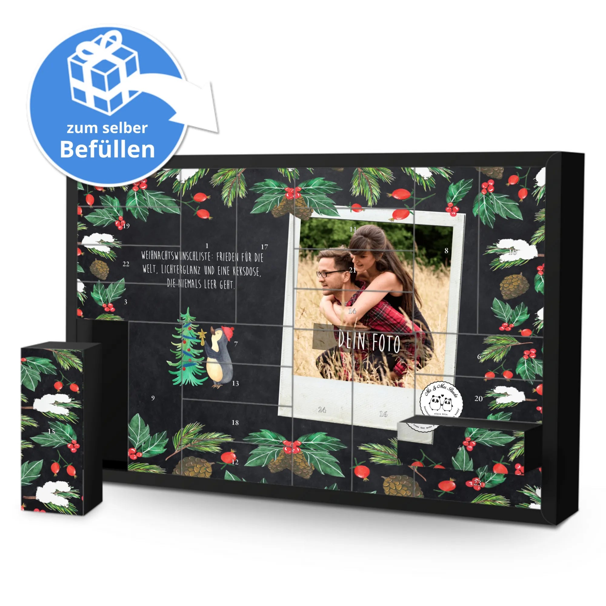 Personalisierter Befüllbarer Foto Adventskalender Pinguin Weihnachtsbaum