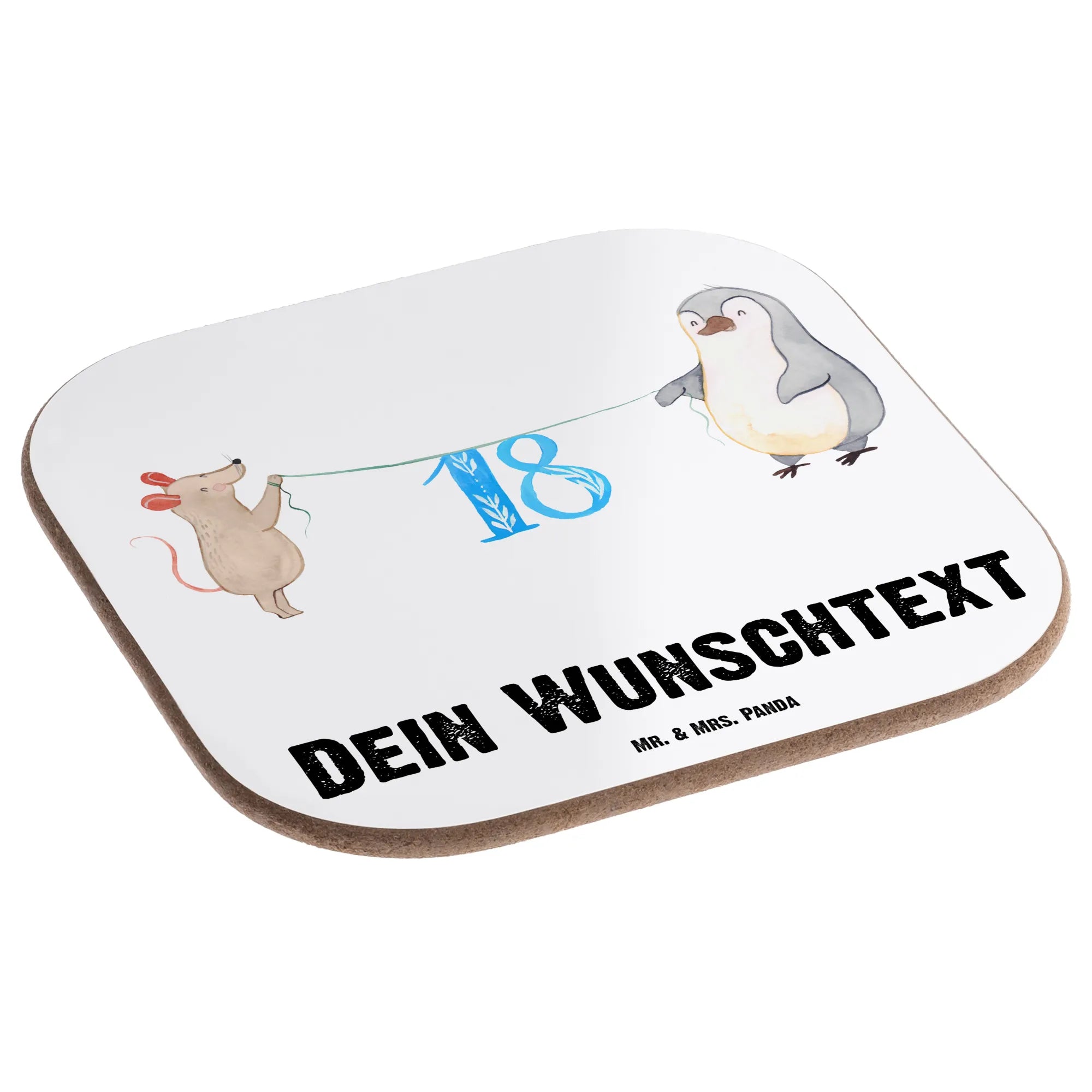 Personalisierter Bierdeckel 18. Geburtstag Maus Pinguin