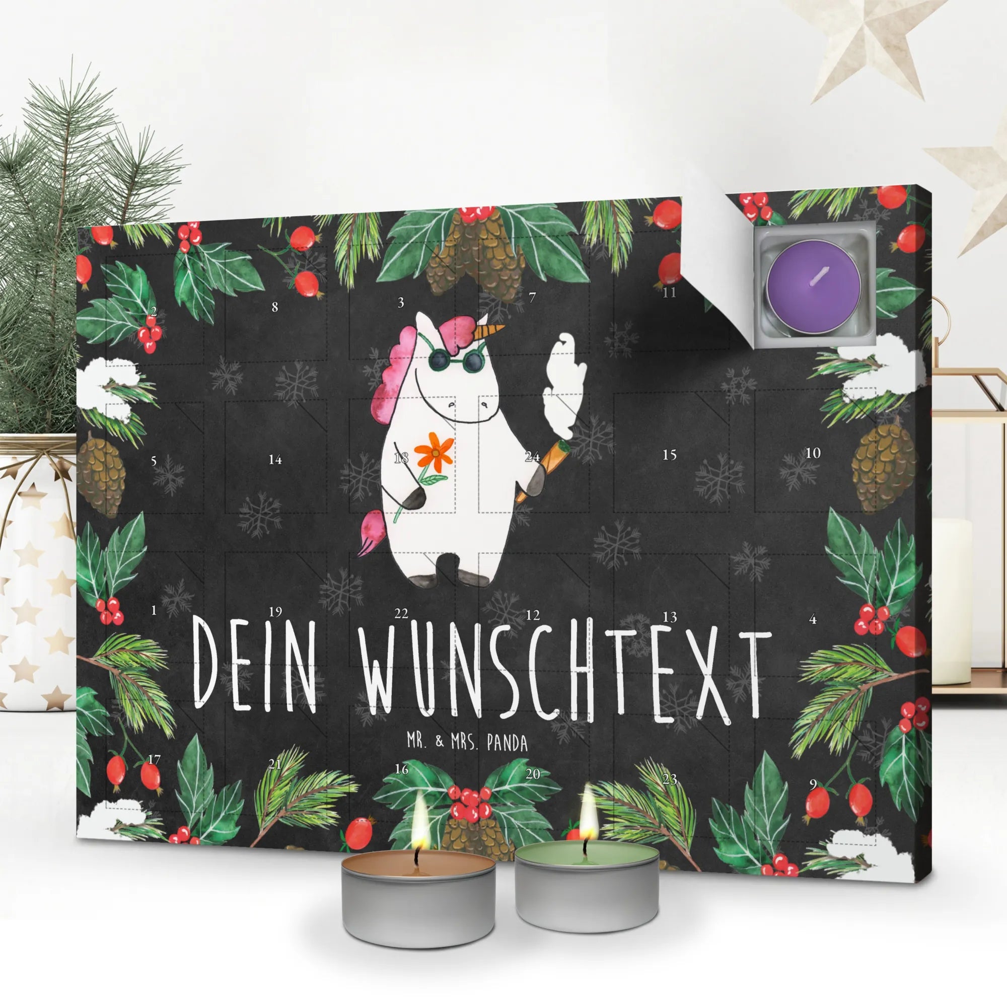 Adventskalender Duftkerzen personalisiert Einhorn Woodstock - Kreidetafel