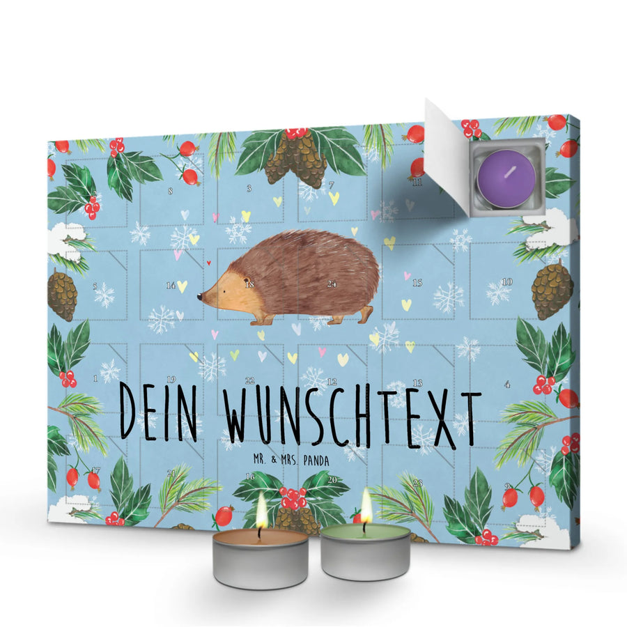 Personalisierter Duftkerzen Adventskalender Igel Herzen - Eisblau