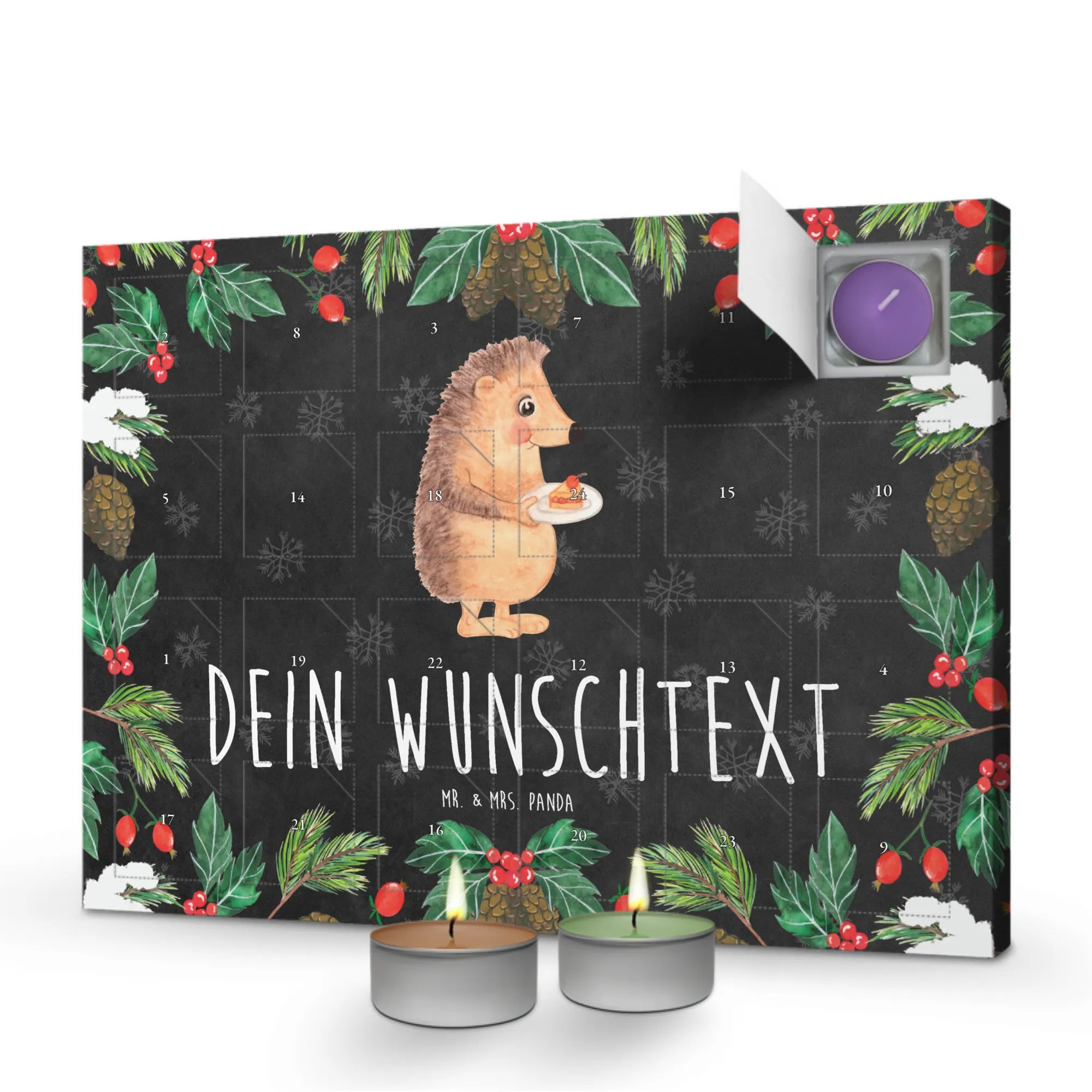 Duftkerzen Adventskalender mit Namen Igel Kuchenstück - Kreidetafel