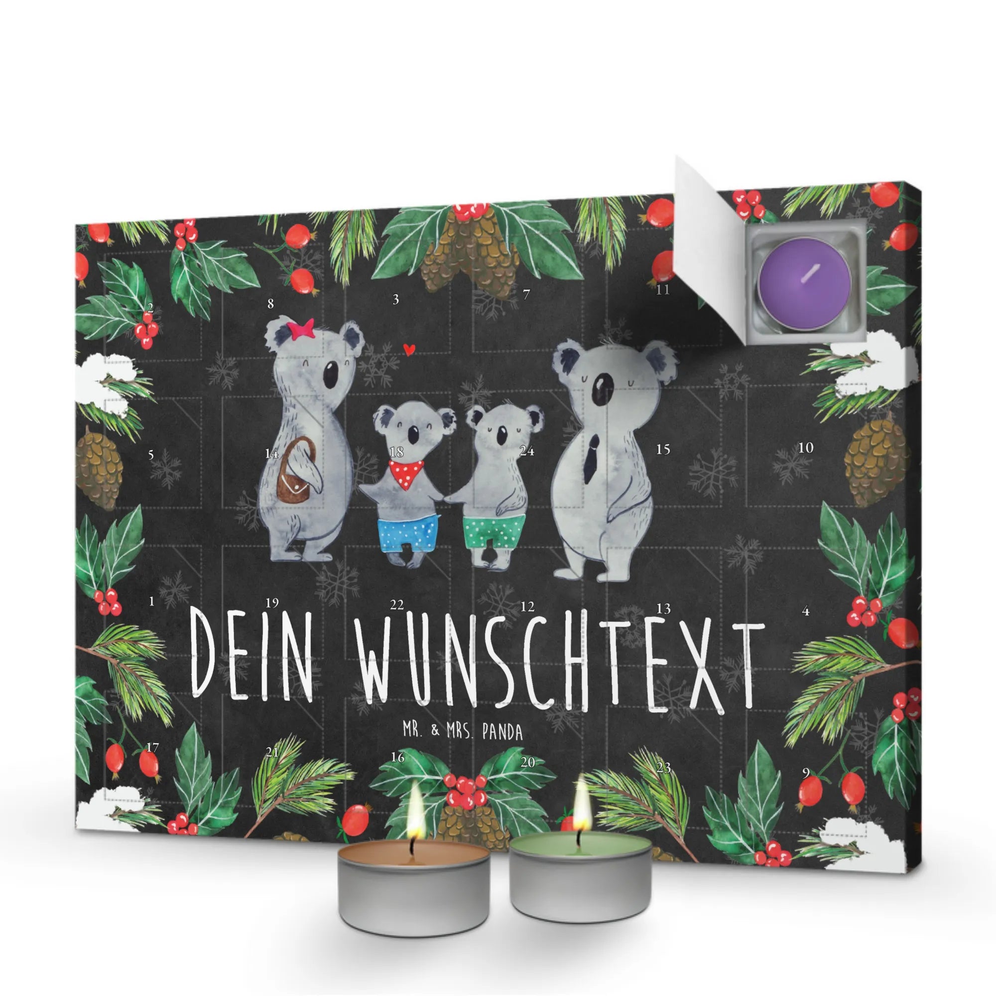 Kerzenkalender personalisiert Koala Familie zwei – Mr. & Mrs. Panda