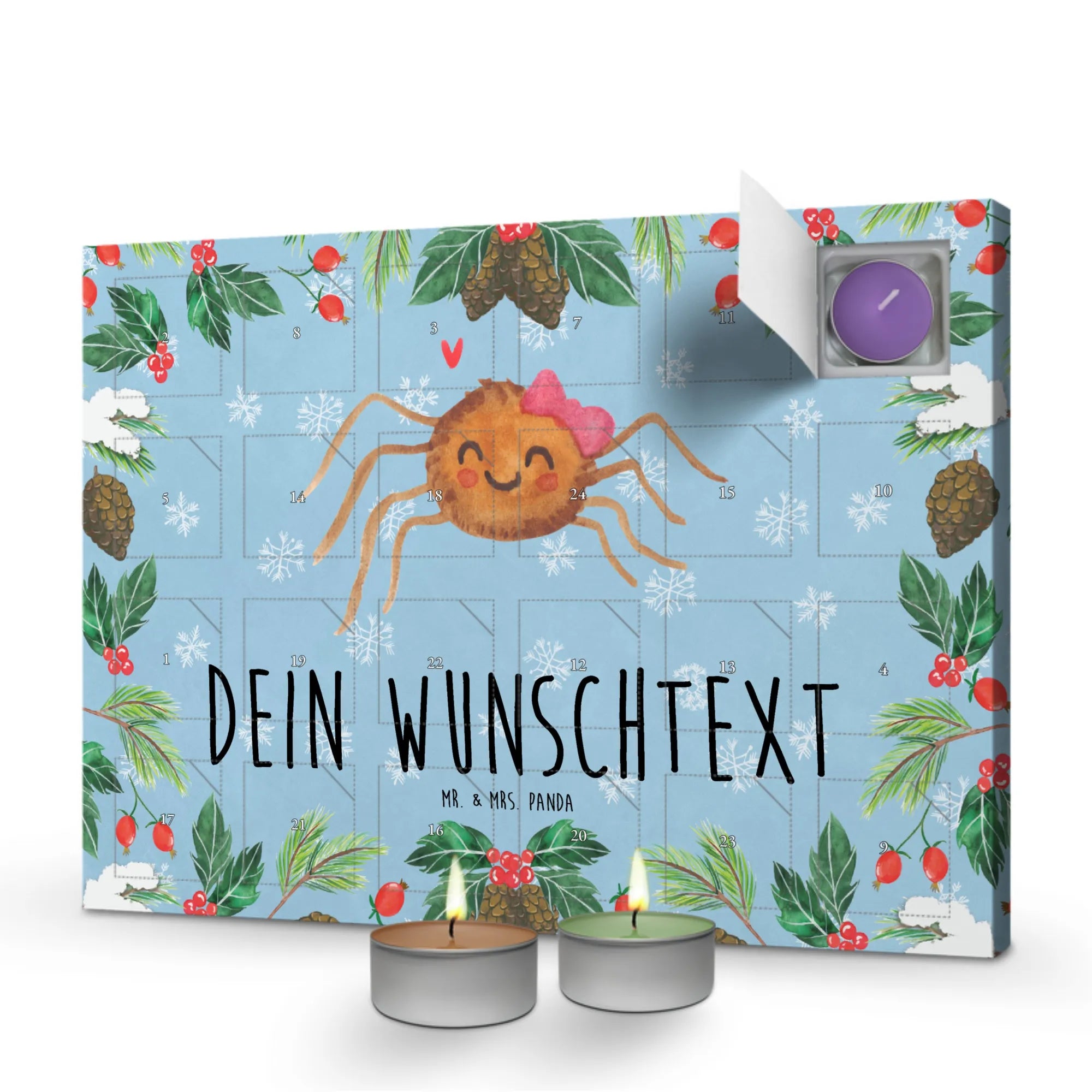 Personalisierter Duftkerzen Adventskalender Spinne Agathe Freude - Eisblau