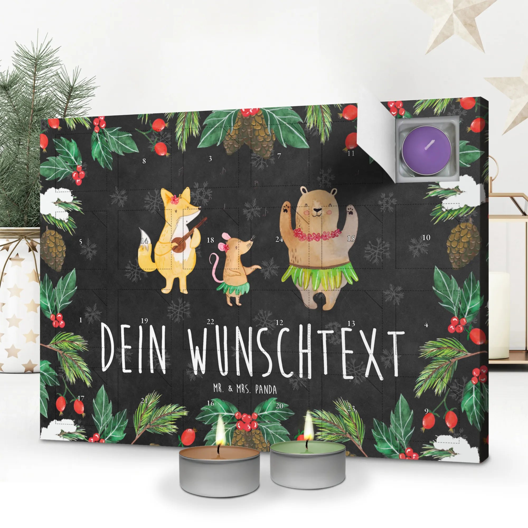 Adventskalender Duftkerzen personalisiert Waldtiere Aloha - Kreidetafel