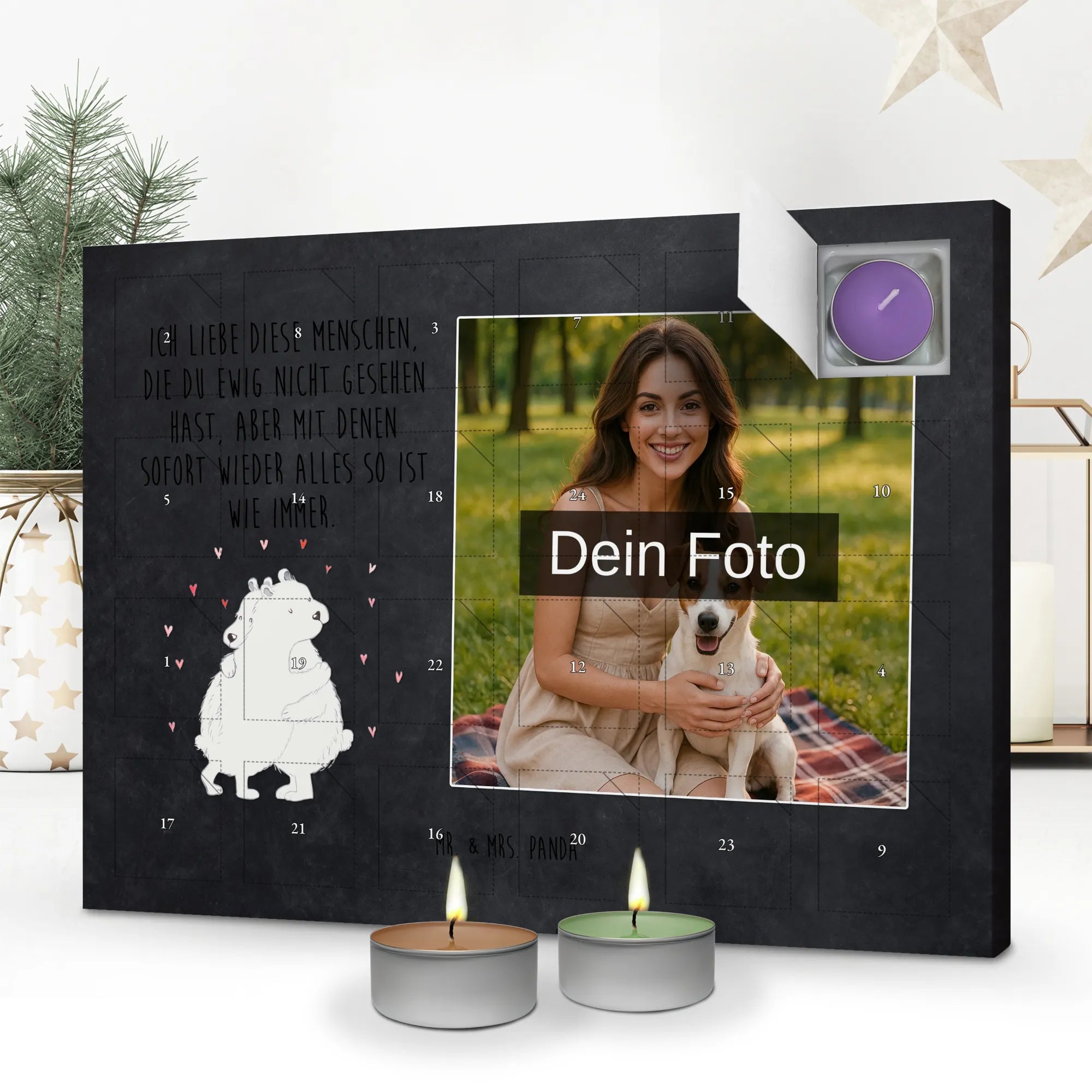 Personalisierter Duftkerzen Foto Adventskalender Eisbär Umarmen - Kreidetafel