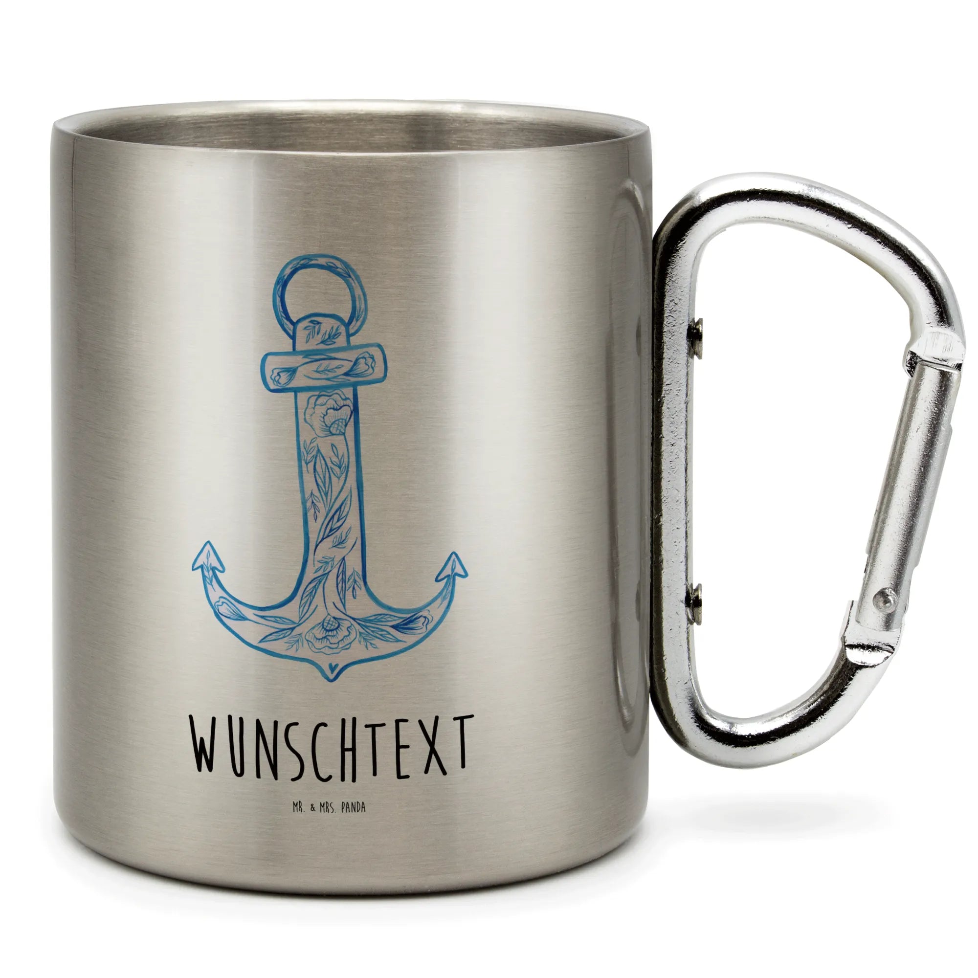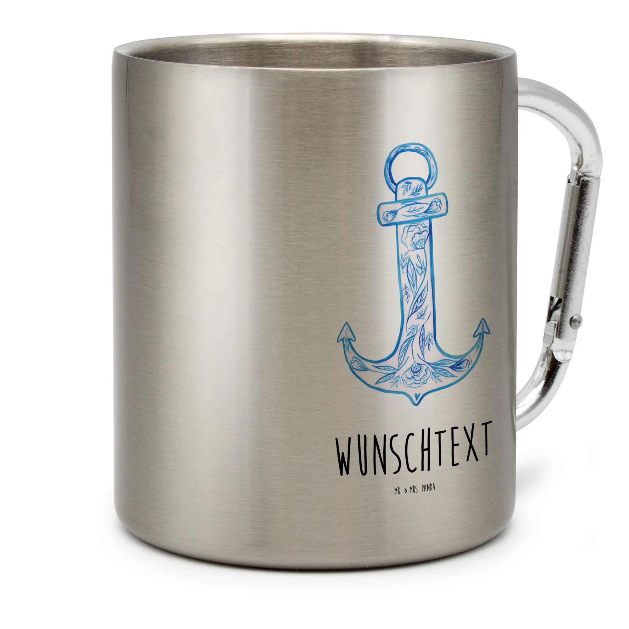 Personalisierter Edelstahlbecher Anker Blau – Mr. & Mrs. Panda