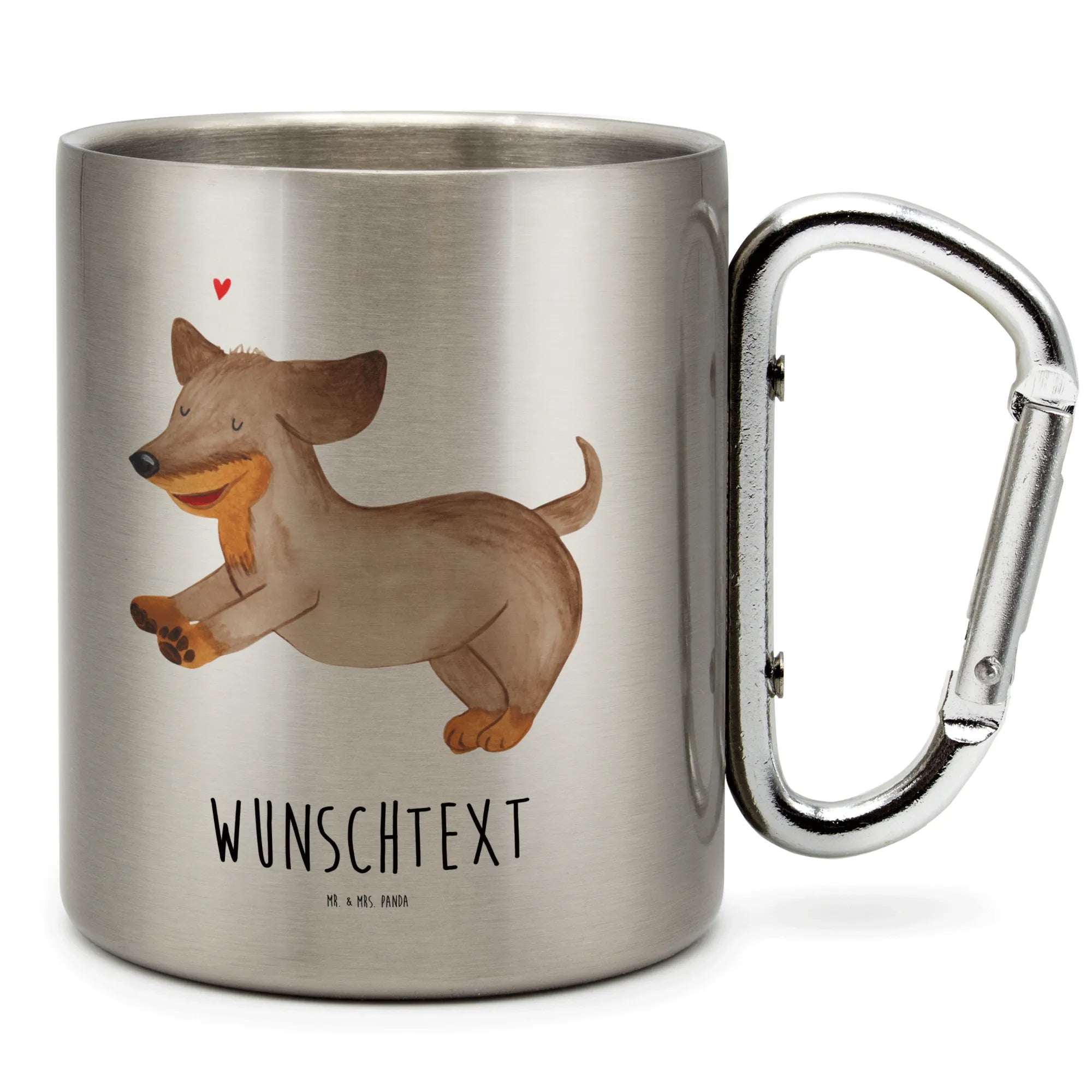 Mit einem tollen Motiv eines glücklichen Dackels bedruckt, ist dieser Edelstahlbecher nicht nur ein funktionales Geschenk, sondern auch ein echter Hingucker. Die Edelstahlbecher verfügen über einen Karabinerhaken, sodass du sie problemlos an deinem Rucksack oder deiner Gürtelschlaufe befestigen kannst. So hast du immer deine persönliche Tasse für unterwegs dabei!