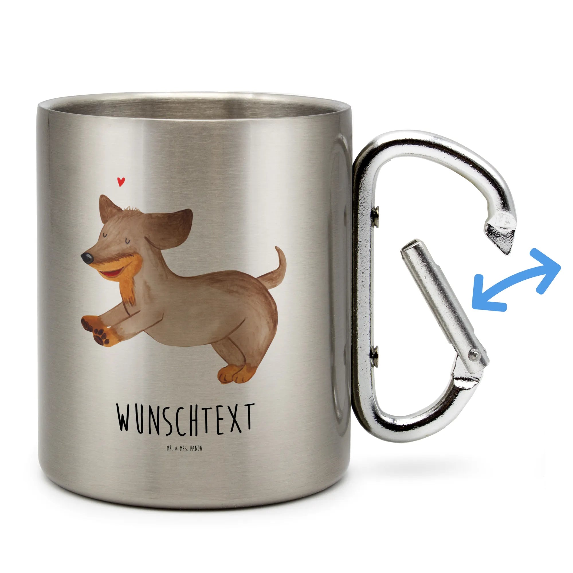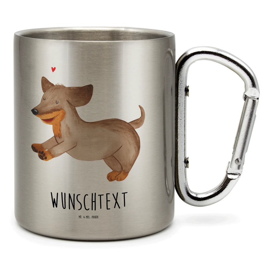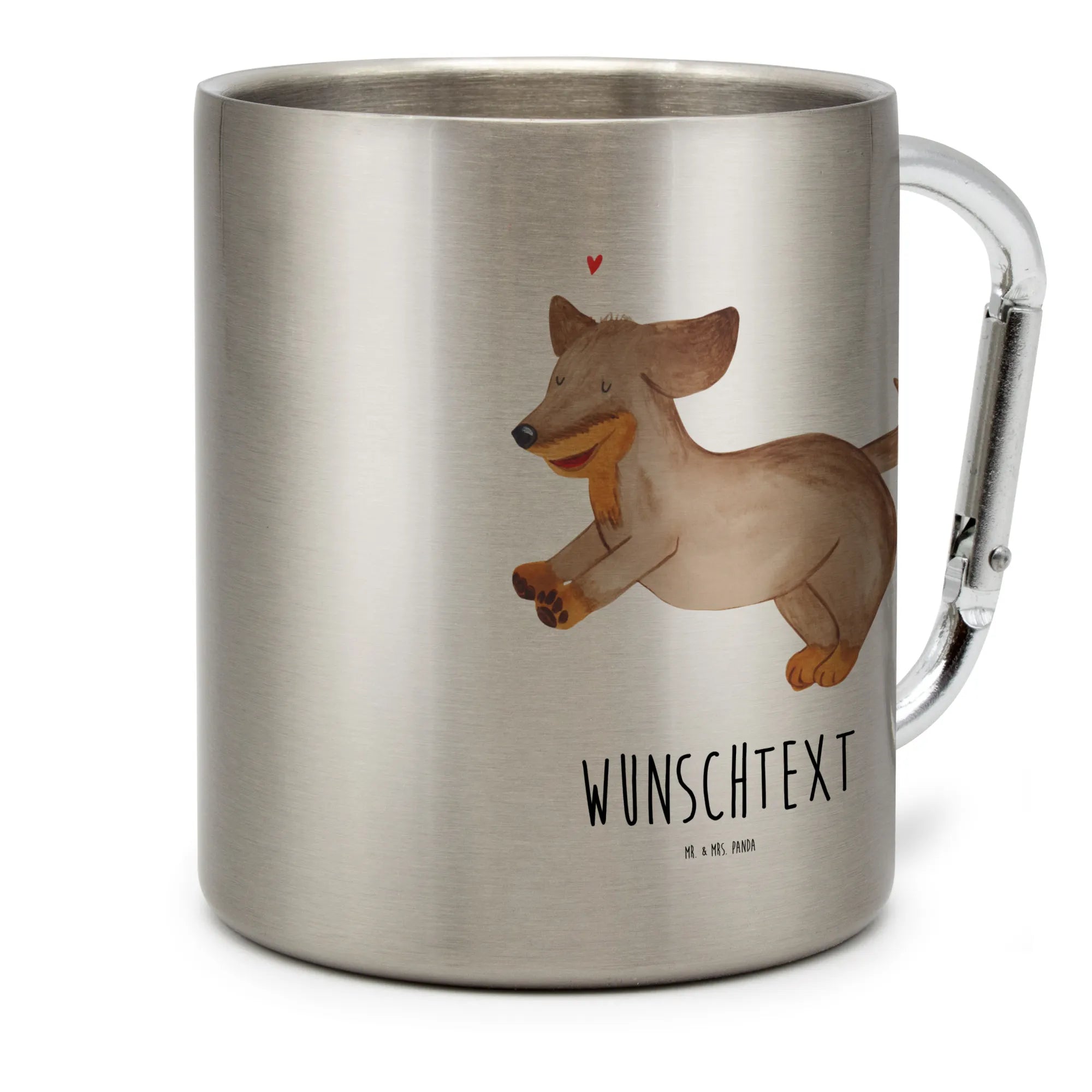 Personalisierter Edelstahlbecher Hund Dackel fröhlich
