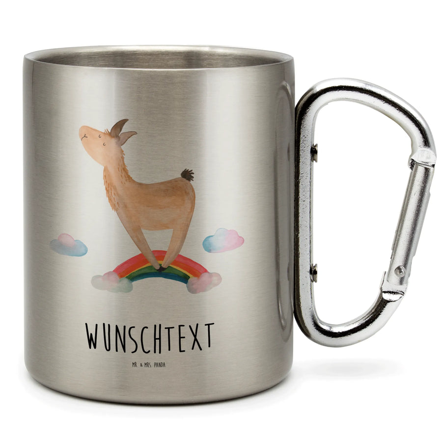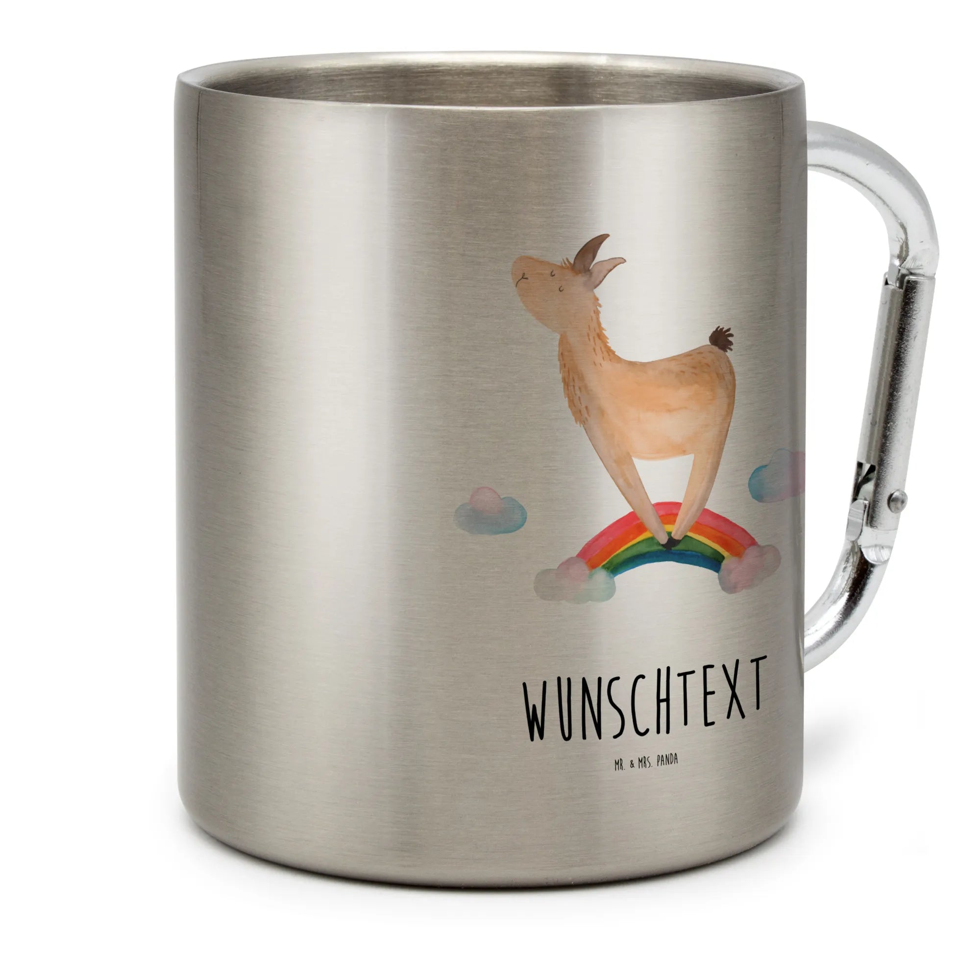 Personalisierter Edelstahlbecher Lama Regenbogen