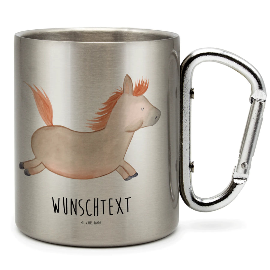 Personalisierter Edelstahlbecher Pferd springt