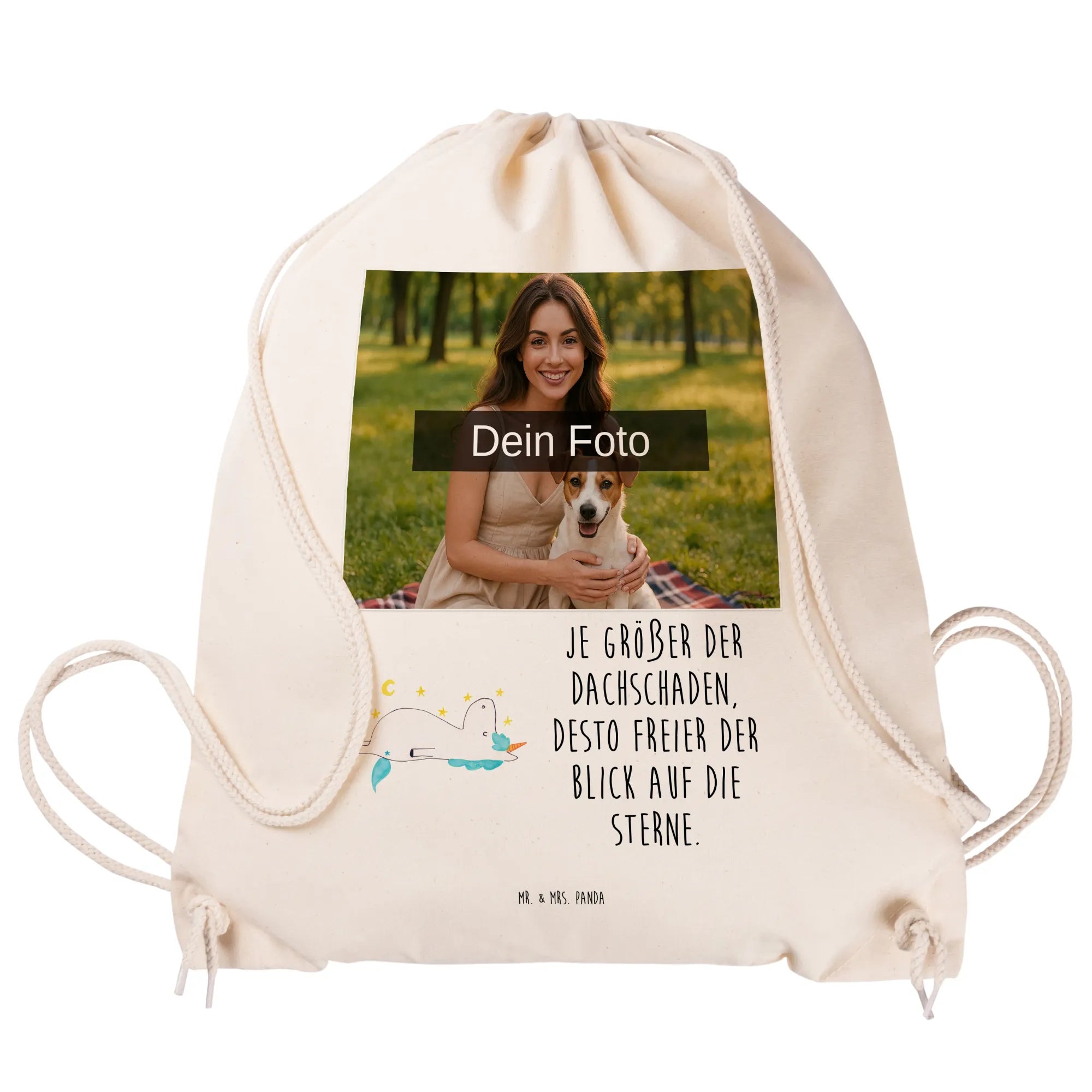 Bringe deine Persönlichkeit in den Alltag mit dem personalisierten Foto Sportbeutel von Mr. & Mrs. Panda! Mit einem kompakten Maß von 420 mm x 380 mm und einem superleichten Gewicht von 90 g, ist dieser Sportbeutel der Trend für alle aktiven Menschen. Hergestellt aus 100% weicher Baumwolle, bietet er dir höchsten Komfort, egal ob beim Sport, beim Yoga oder einfach beim Bummeln. Der Clou? Du kannst deinen eigenen Fotodruck auswählen! Achte darauf, dass du ein Foto in hoher Auflösung hochlädst, damit die Farben strahlen und die Details sichtbar bleiben. Einfache Handhabung und ein stabiler Kordelzug machen ihn zum idealen Begleiter – glasklar, einfach und durchdacht. Dieser Bag kann dein neuer Lieblingsbeutel werden! Waschbar bei 30°C – somit bleibt er immer frisch und sauber, egal wohin der Tag dich führt.