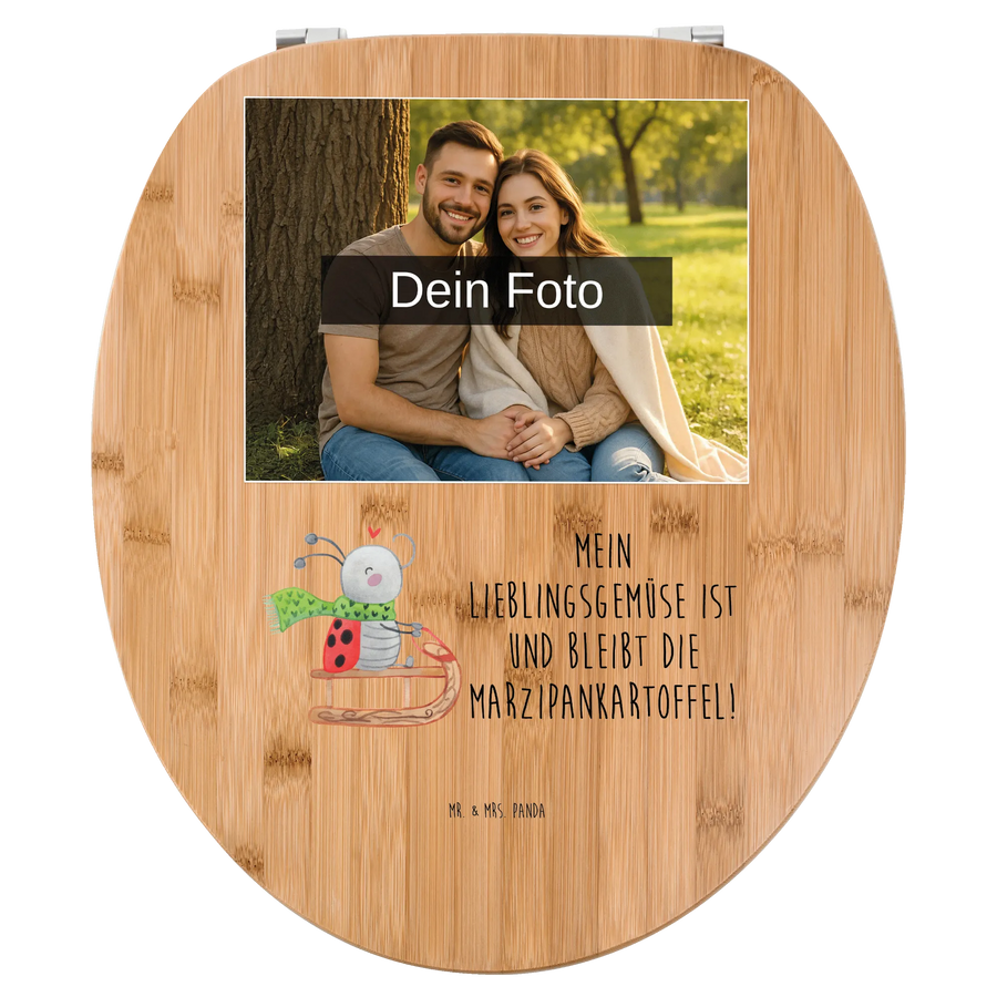 Erlebe die perfekte Kombination aus Stil und Komfort mit unserem personalisierten Foto WC Sitz Motiv von Mr. & Mrs. Panda! Mit den Maßen von 430 mm x 370 mm x 50 mm kommt dieser einzigartige Toilettensitz in zwei Varianten: hochwertigem Bambus Holz (braun) oder edlem MDF Holz (weiß). Der liebevoll gestaltete Sitz wird mit fröhlichen Motiven und Sprüchen bedruckt, die deinem Badezimmer eine besondere Note verleihen. Und das Beste? Du kannst ihn ganz nach deinem Geschmack mit deinem Wunschfoto gestalten! Achte darauf, dass das hochgeladene Bild in hoher Auflösung ist, um eine optimale Druckqualität zu garantieren. Achte darauf, dass der Bildausschnitt stimmt, damit alles gut zur Geltung kommt. Passend für alle Euro-WC-Becken und inkl. Montageset, bietet dieser WC Sitz nicht nur hohen Sitzkomfort, sondern macht dein Bad auch zu einem echten Hingucker. Vor allem an kalten Tagen kannst du den angenehmen Komfort genießen. Pflege ihn einfach mit einem feuchten Tuch und milder Seife – so bleibt er lange schön! Mit einem langlebigen UV-Druck bleibt dein persönliches Motiv immer strahlend! Leg dir jetzt diesen besonderen Toilettensitz zu und gestalte dein Bad nach deinen Vorstellungen!
