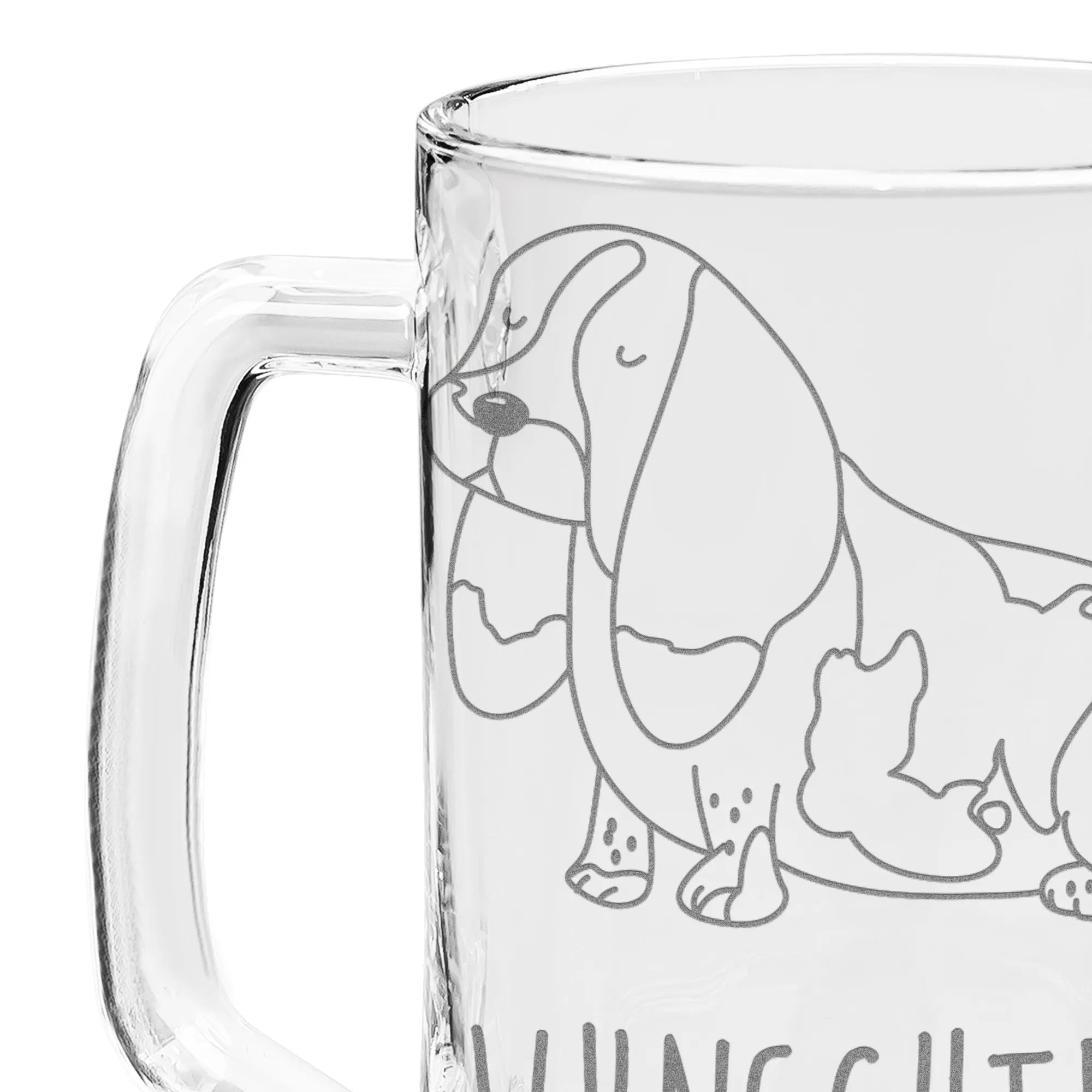Mit der Möglichkeit, deinen gewünschten Namen oder einen persönlichen Wunschtext in die hochwertige Lasergravur einfügen zu lassen, wird dieser Bierkrug zu einem einzigartigen und unvergesslichen Geschenk. Der Basset Hound, bekannt für seinen ruhigen und liebevollen Charakter, verleiht dem Bierkrug eine spezielle Note. Jeder Schluck aus diesem anmutigen Glas wird zu einem kleinen Fest für jeden Tierfreund.