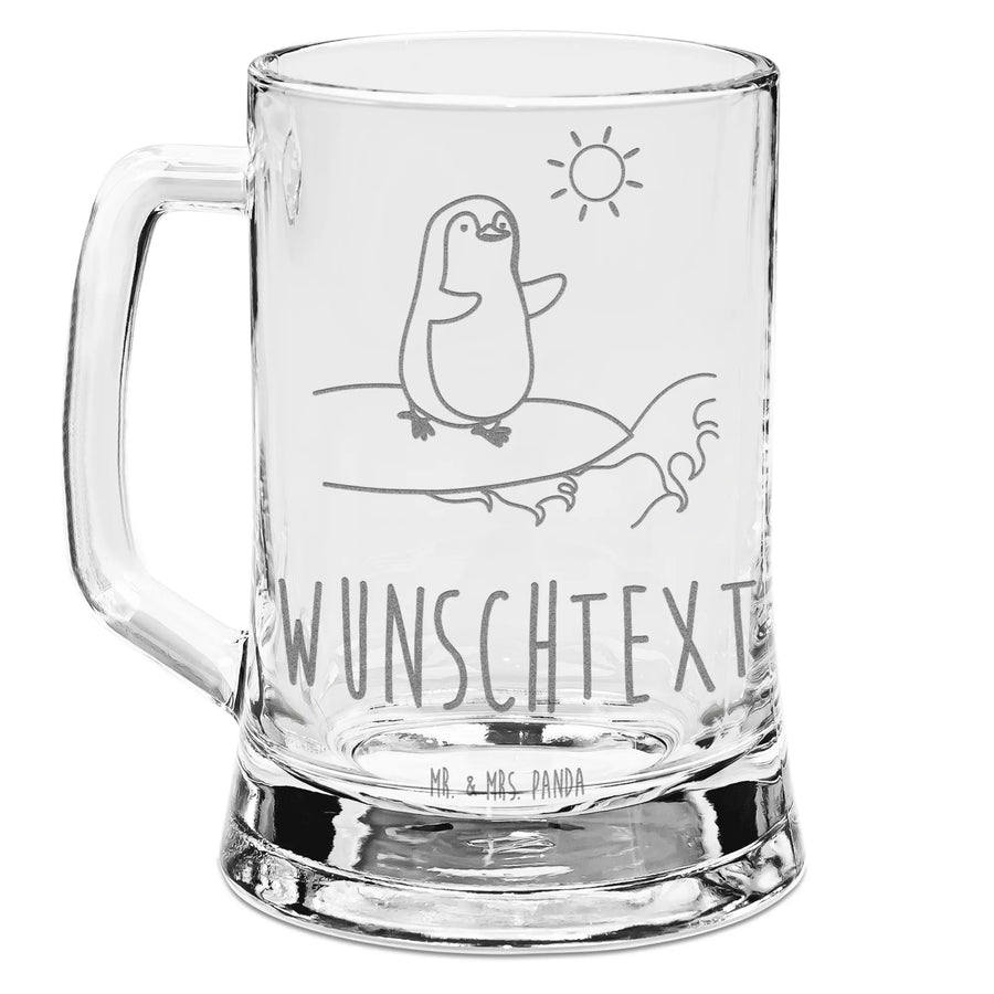 Personalisierter Gravur Bierkrug Pinguin Surfer